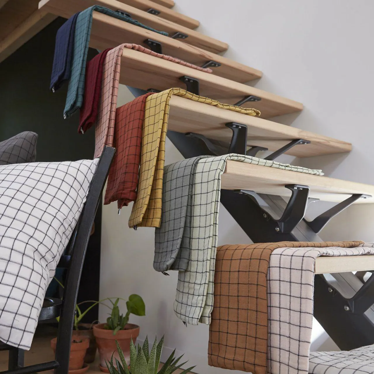 Imprimé : taie à petits carreaux.