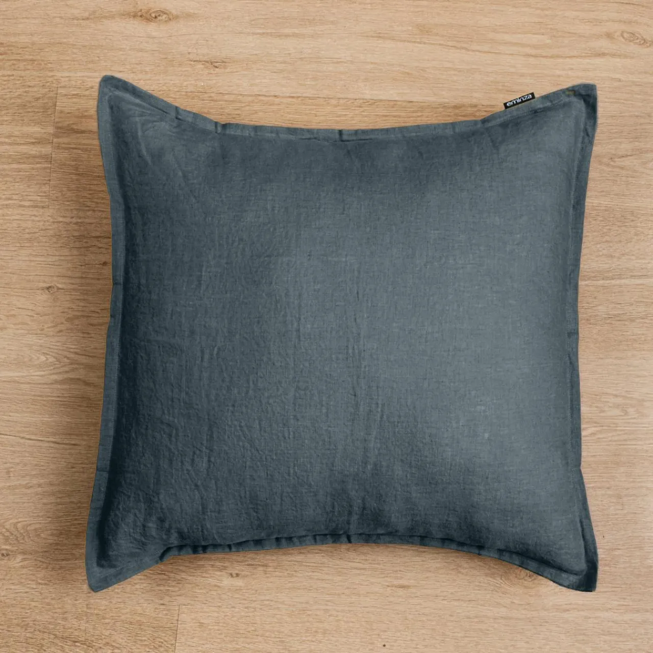 Taie D’Oreiller, Traversin|EMINZA Taie d’oreiller carrée lin lavé (60 x 60 cm) Louise Gris ardoise