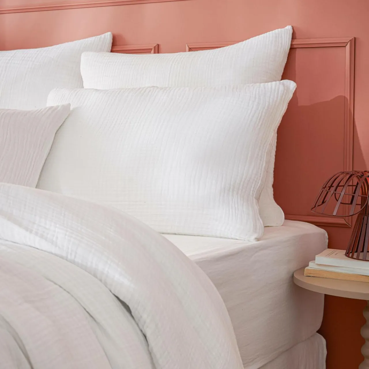 Pour préserver l’aspect unique de la gaze de coton, nous vous recommandons un lavage avec essorage modéré.