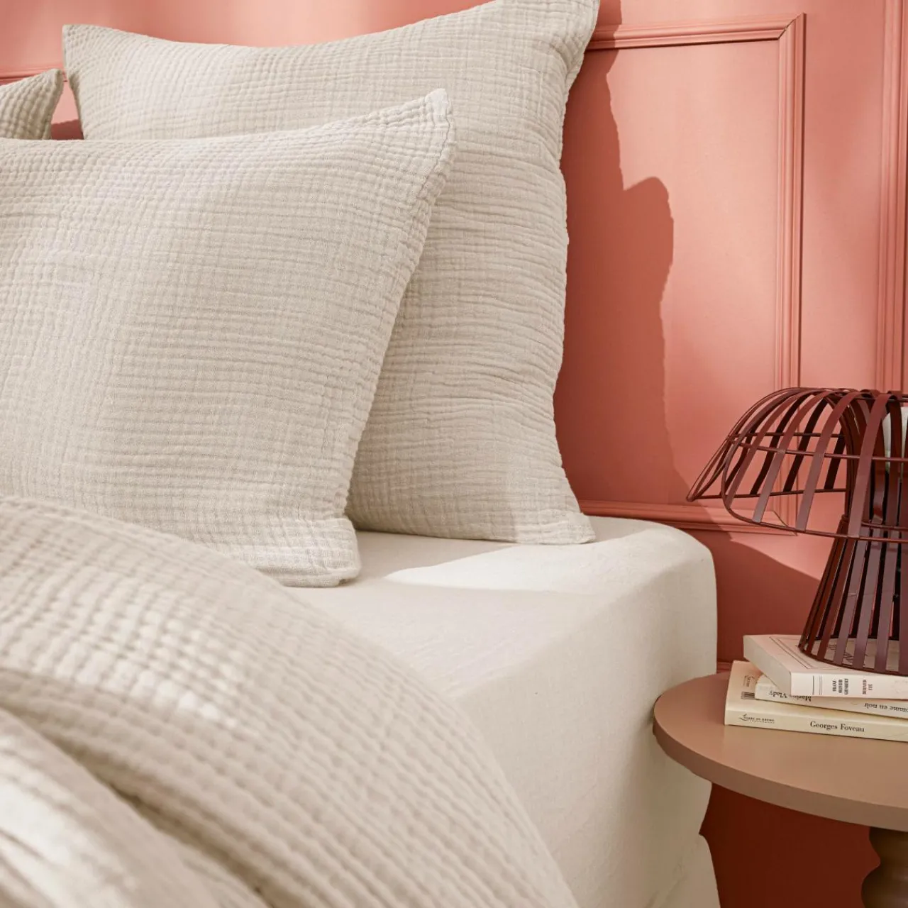 Naturellement gaufré, le linge en gaze de coton ne nécessite pas de repassage.