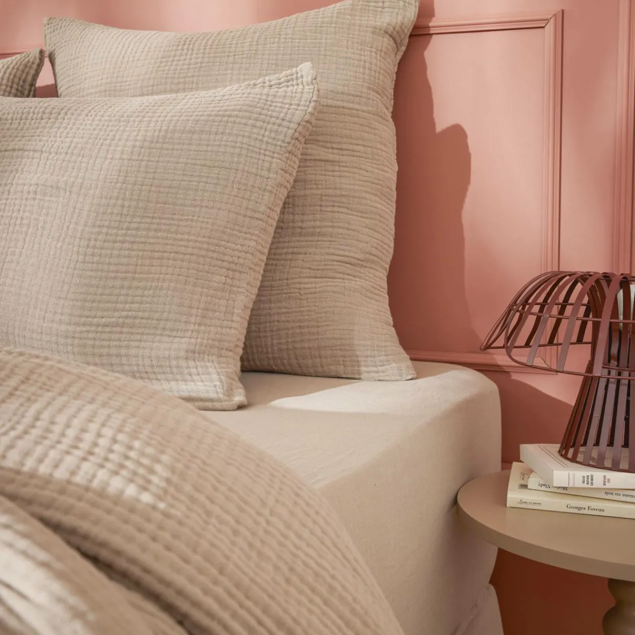 Pour préserver l’aspect unique de la gaze de coton, nous vous recommandons un lavage avec essorage modéré.