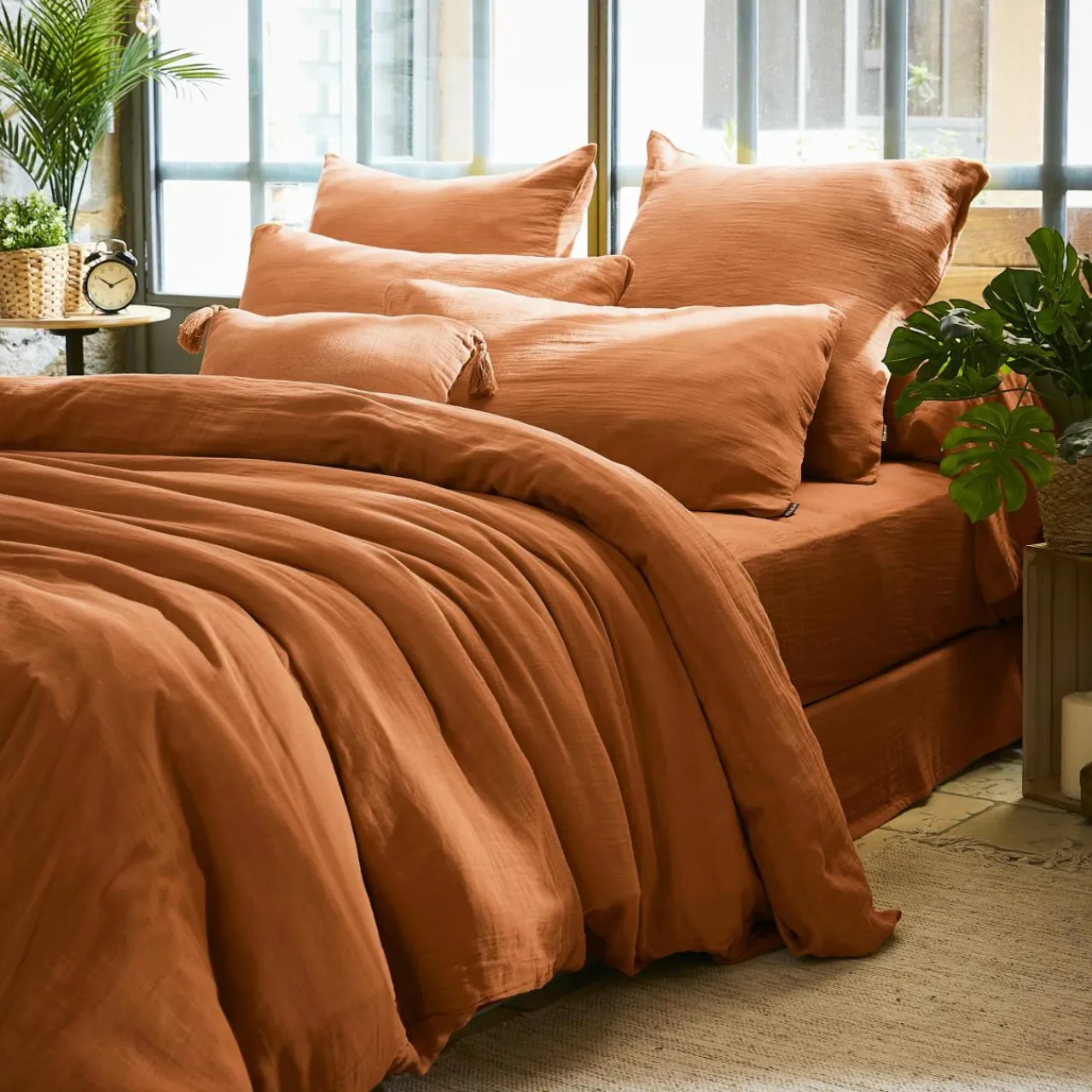 Taie D’Oreiller, Traversin|EMINZA Taie d’oreiller rectangulaire gaze de coton (50 x 70 cm) Gaïa Abricot