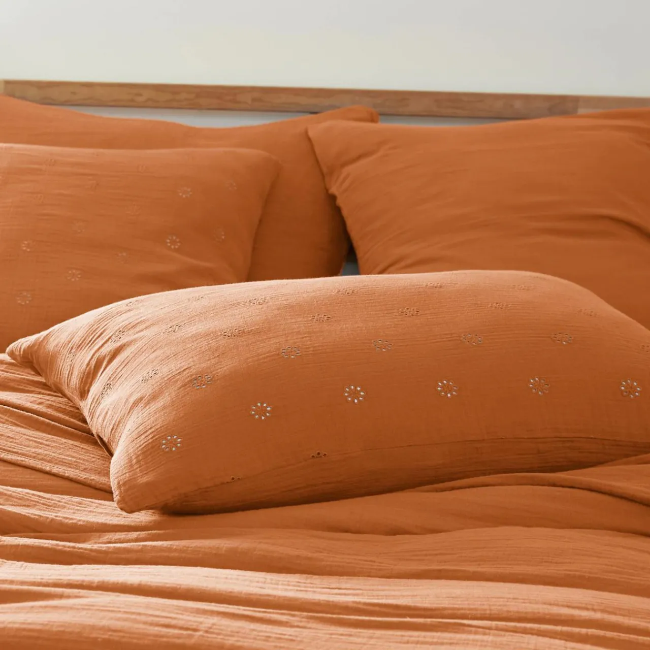 Imprimé : taie fleurie style broderie anglaise.