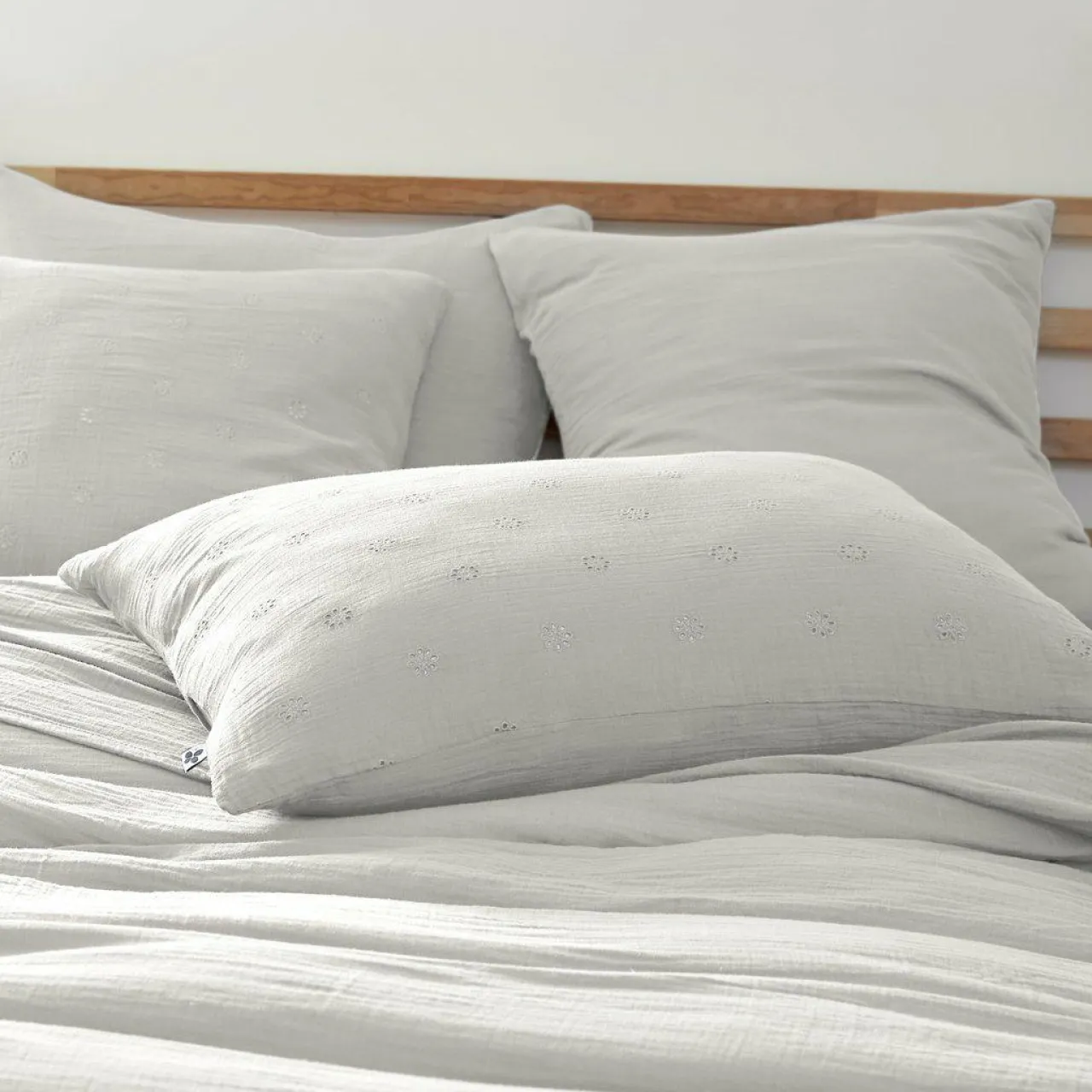 Imprimé : taie fleurie style broderie anglaise.