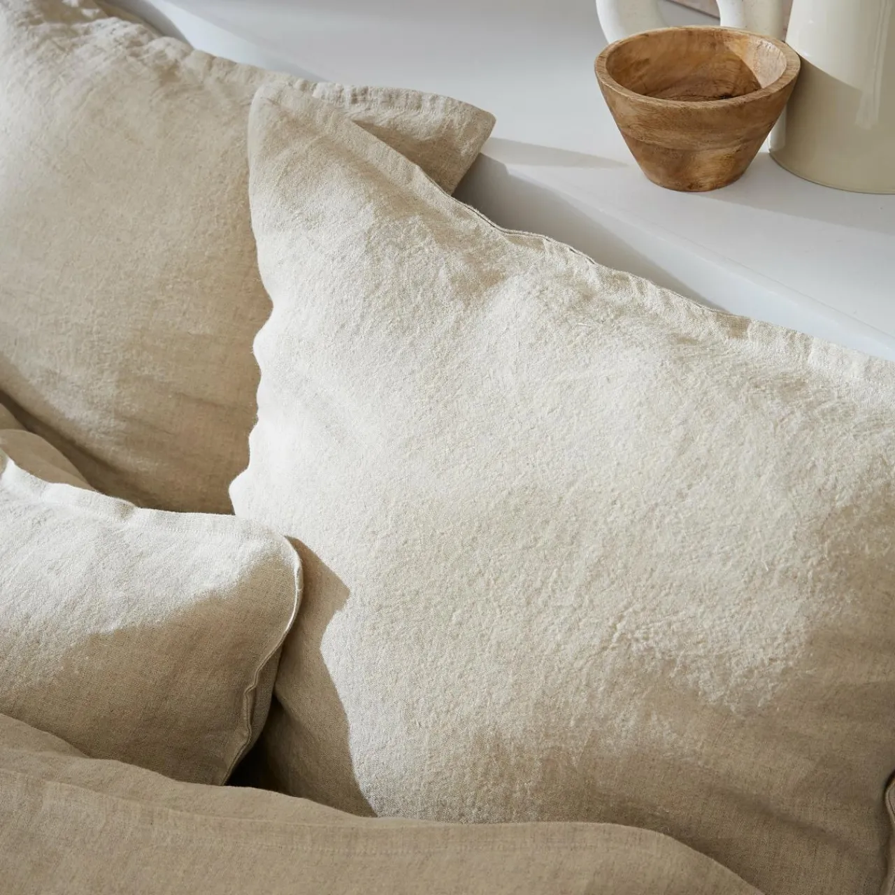 Taie D’Oreiller, Traversin|EMINZA Taie d’oreiller rectangulaire lin lavé (50 x 70 cm) Louise Beige
