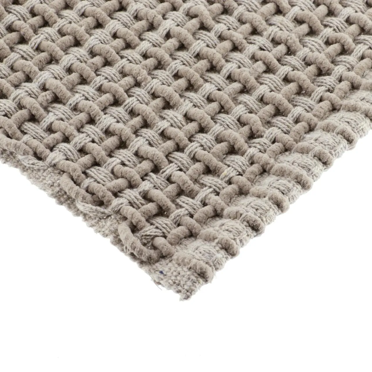 Finition : tapis tressé à franges.