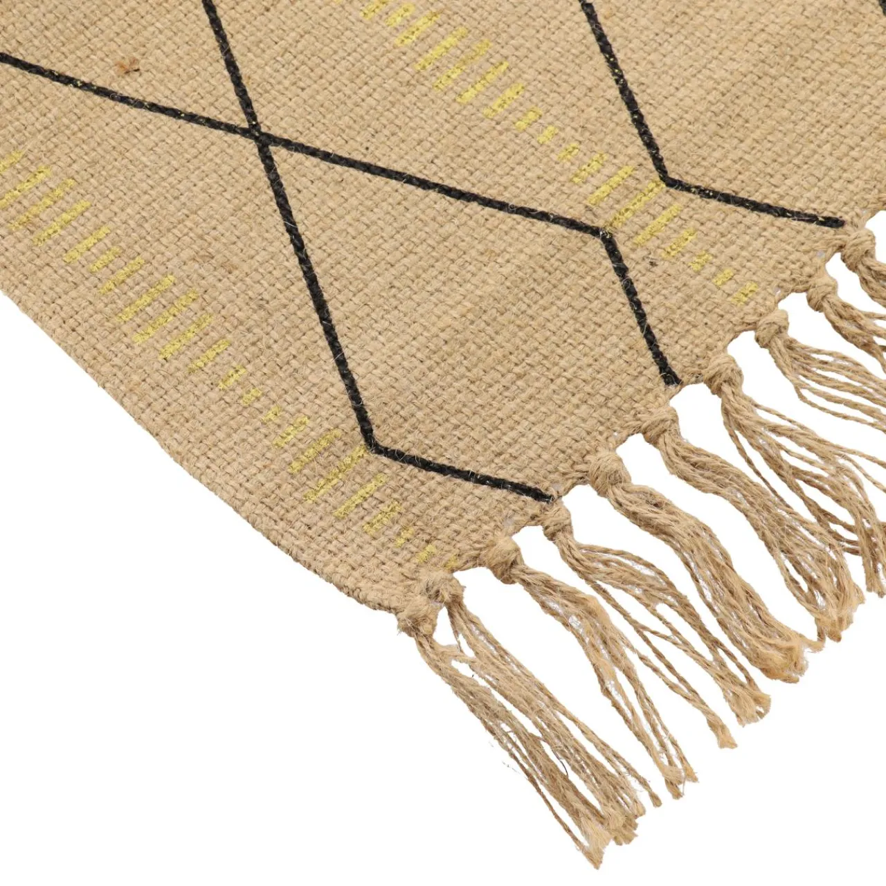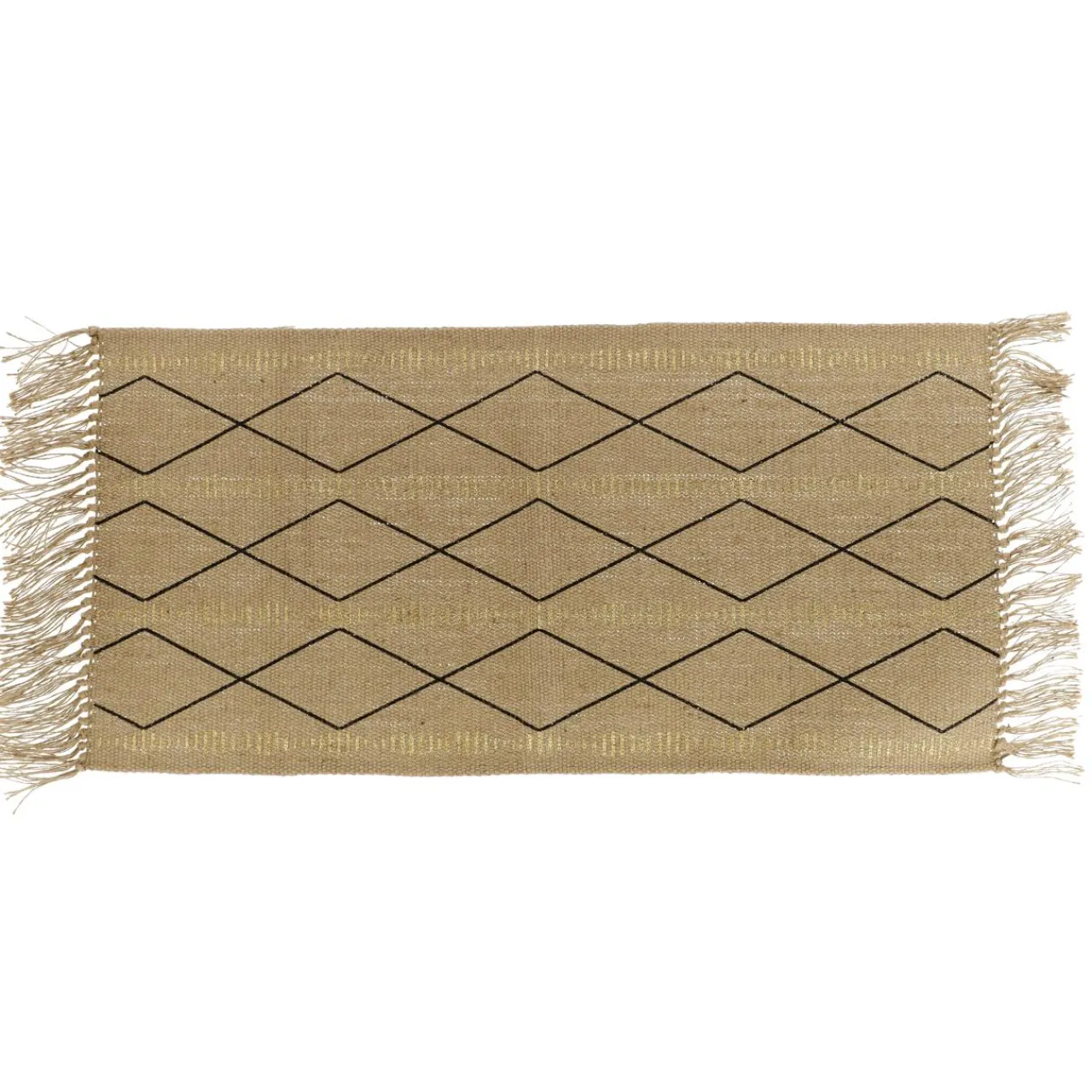 Faites voyager votre intérieur avec ce tapis en jute, imprimé d’un motif exotique.