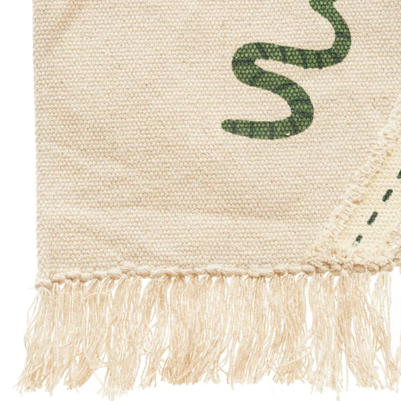 Faites entrer la jungle dans la chambre de votre tout petit avec ce tapis en coton coloré et fun.