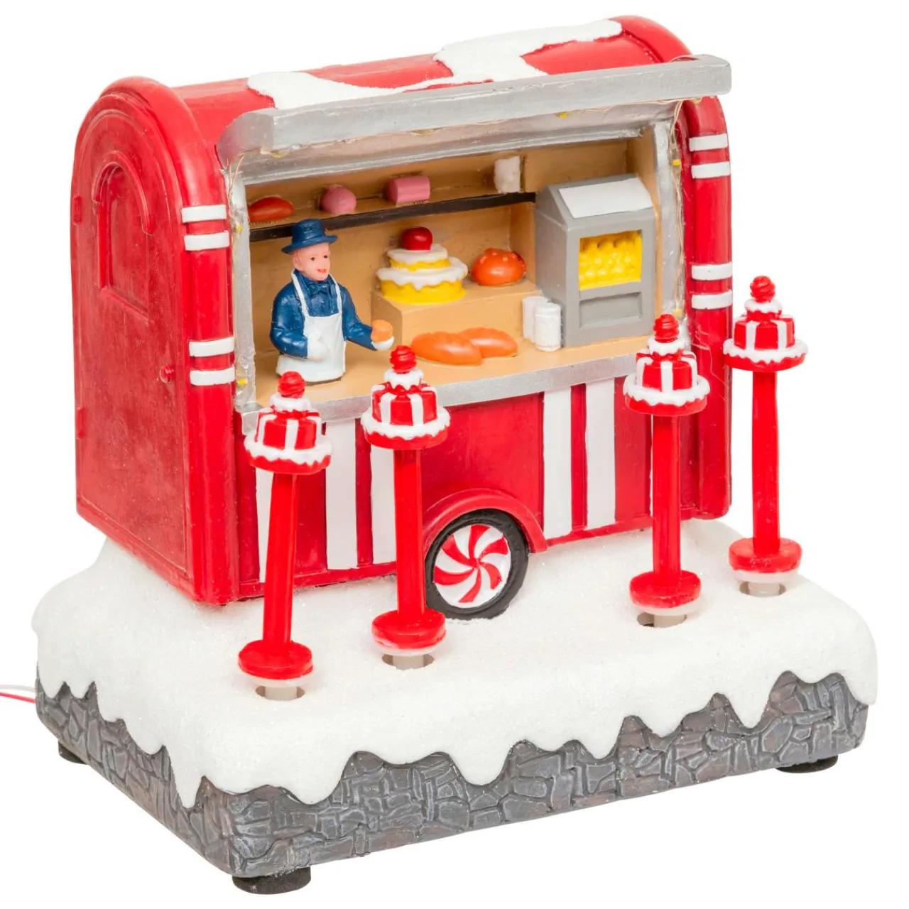 Informations complémentaires : Fonctionne à pile, 3x LR6 – AA – 1,5V incluses. Les gâteaux sur le support montent et descendent.