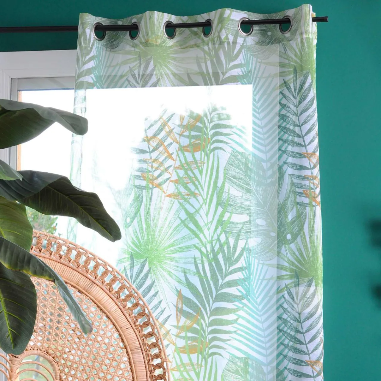 Créez une ambiance exotique dans votre pièce grâce à ce voilage à motif feuillage.