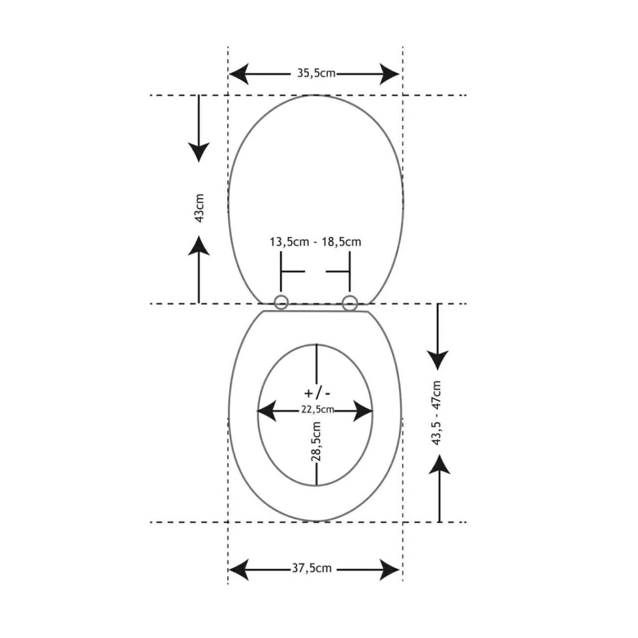 abattant : largeur 37,5 x longueur ajustable entre 43,5 cm et 47 cm.