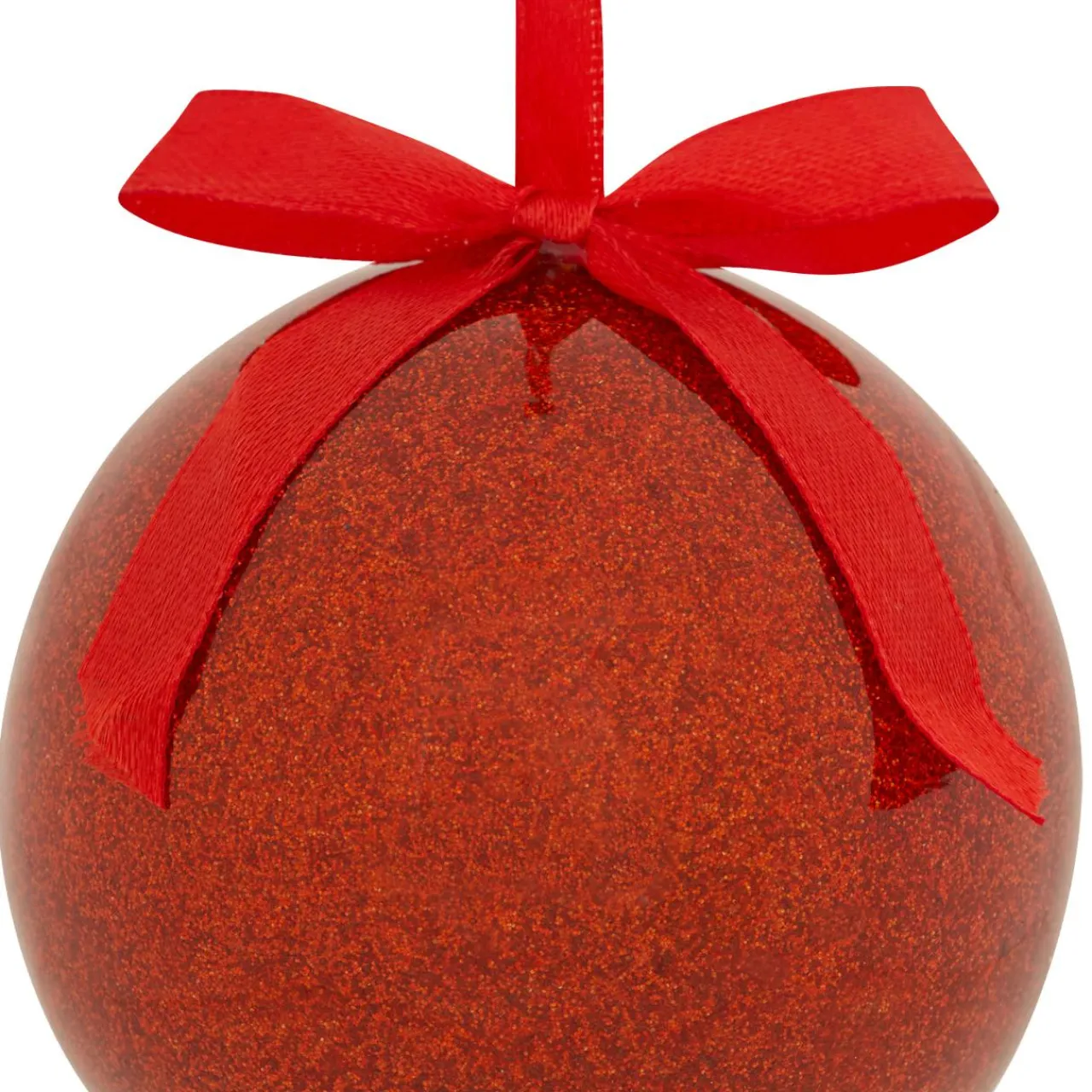 Ces boules de Noël pailletées en rouge apporteront une touche festive et éclatante à votre sapin. Avec leur nœud rouge, elles ajoutent une note traditionnelle et chaleureuse à votre décoration de Noël.