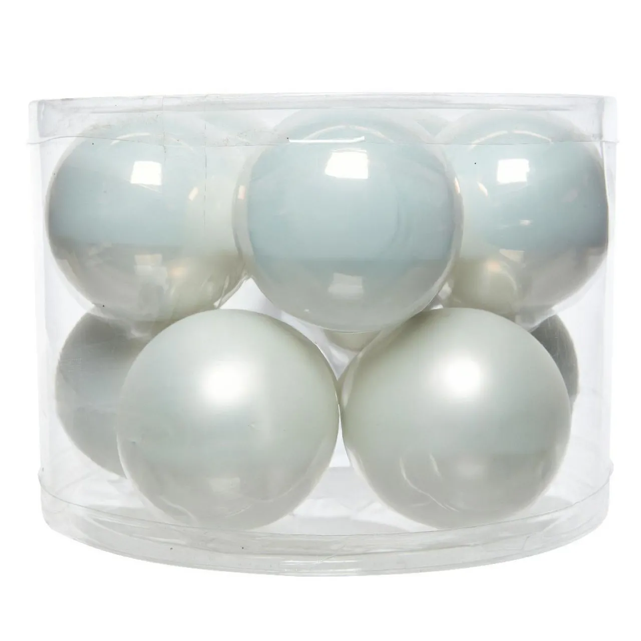 Informations complémentaires : lot de 10 boules, 5 brillantes émaillées et 5 mates. Les boules sont munies d’une suspension comprise de couleur argent.