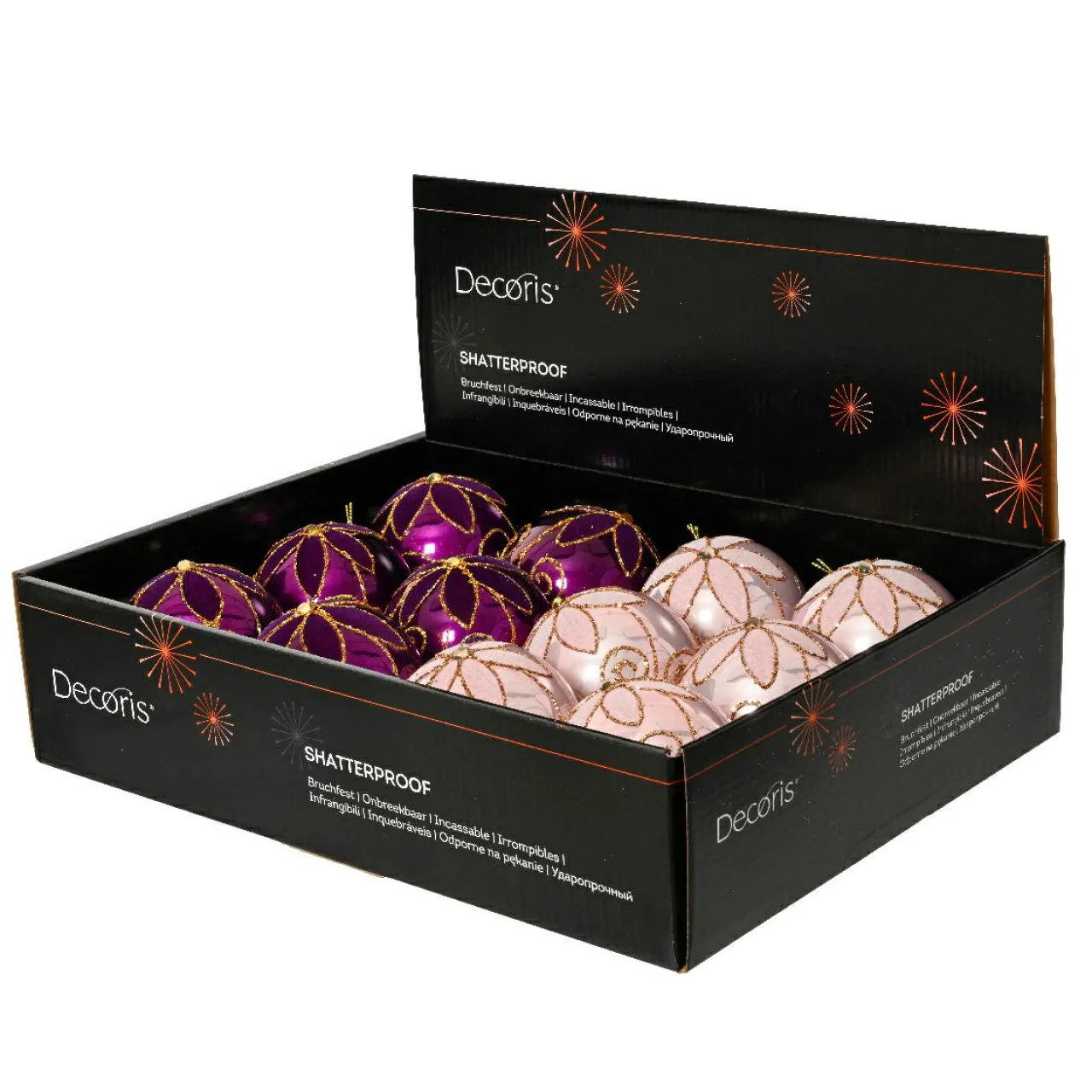 Informations complémentaires : lot de 12 boules de Noël. Les boules sont munies d’une suspension de couleur or.