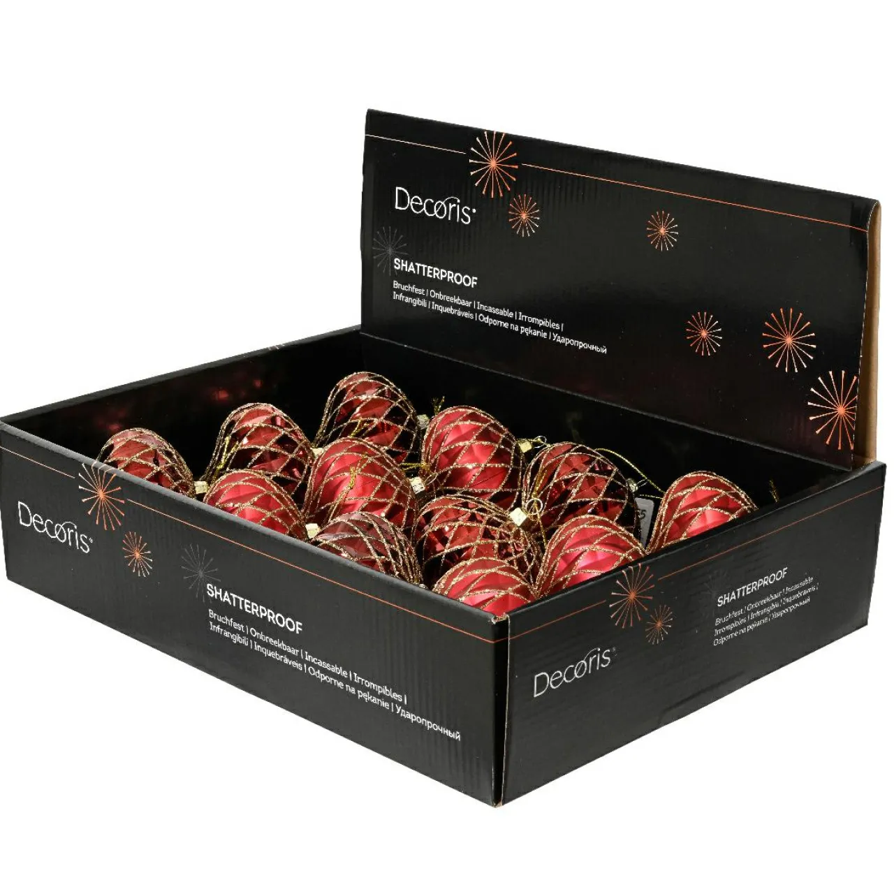 Informations complémentaires : vendu en lot de 12. Les boules sont munies d’une suspension comprise.