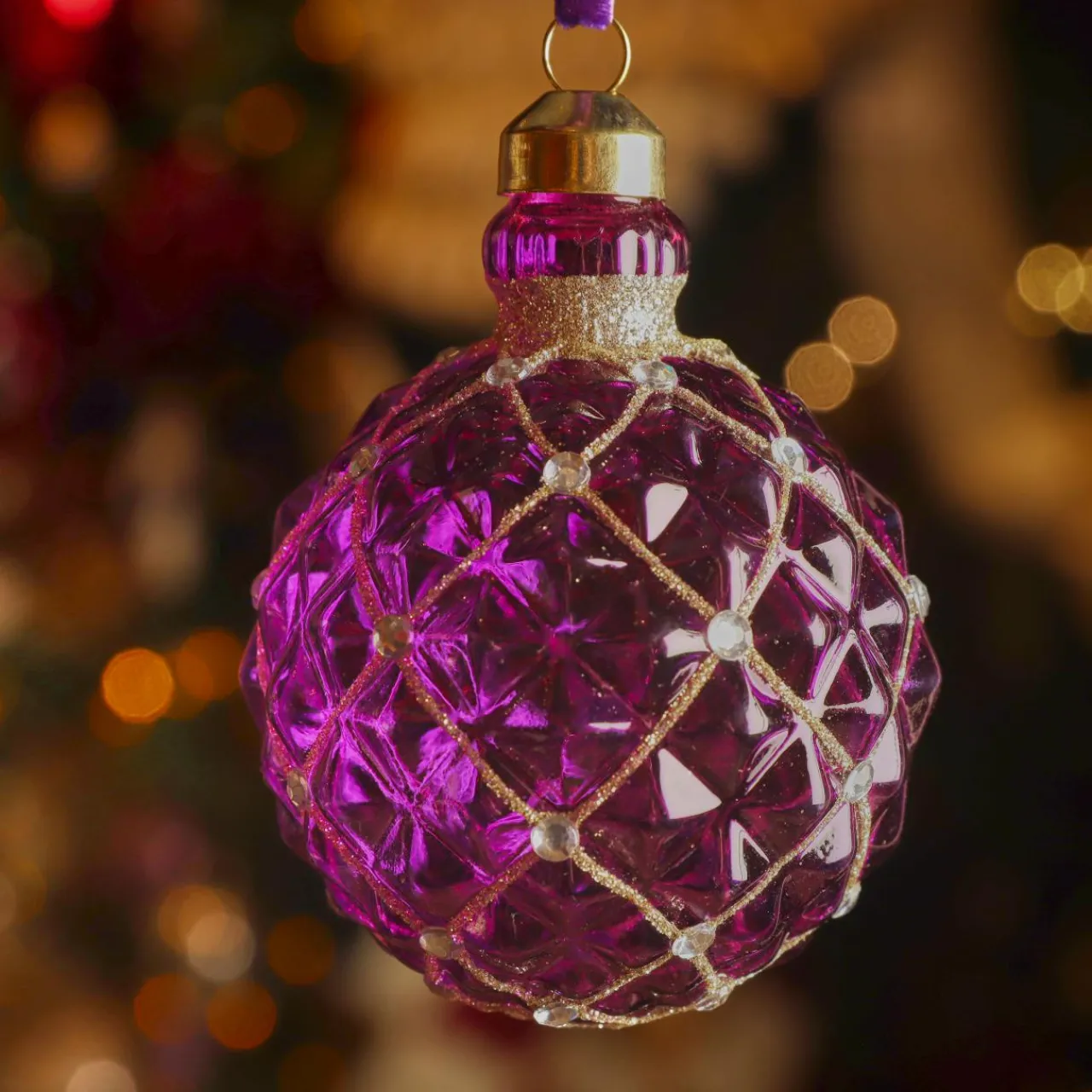 Informations complémentaires : vendu en lot de 3. suspension incluse, ruban de velours rouge et violet.