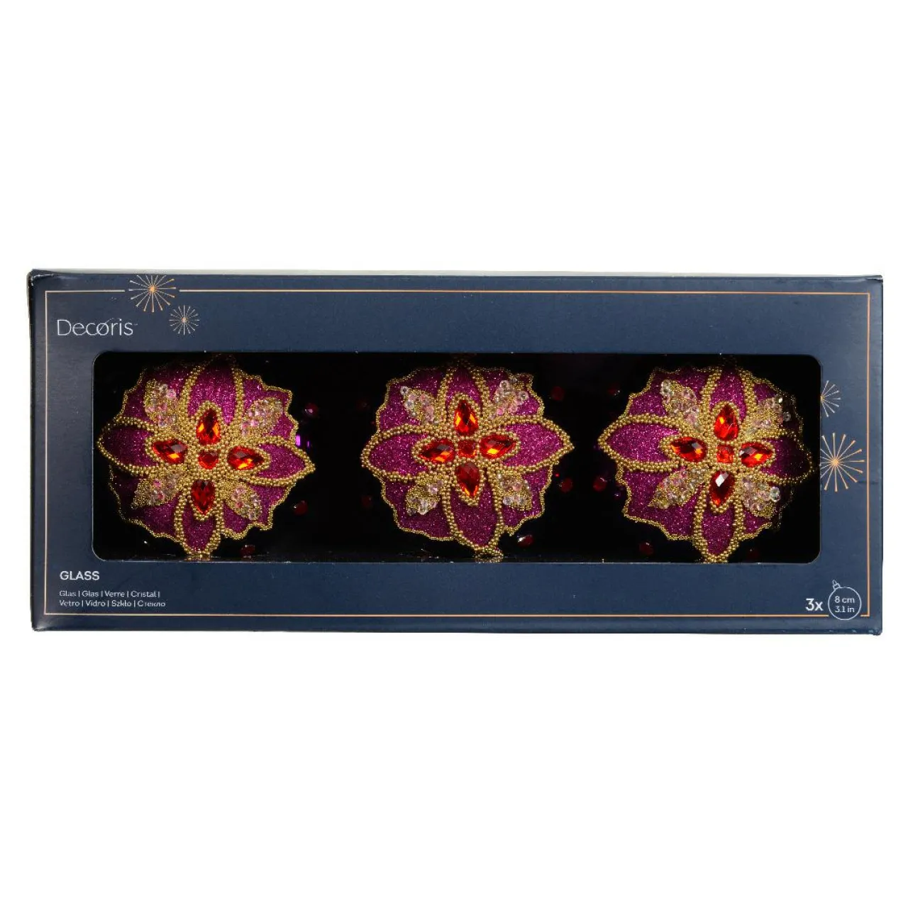 Informations complémentaires : vendu en lot de 3. Les boules sont munies d’une suspension rouge en velours et d’un couvercle en métal luxueux.