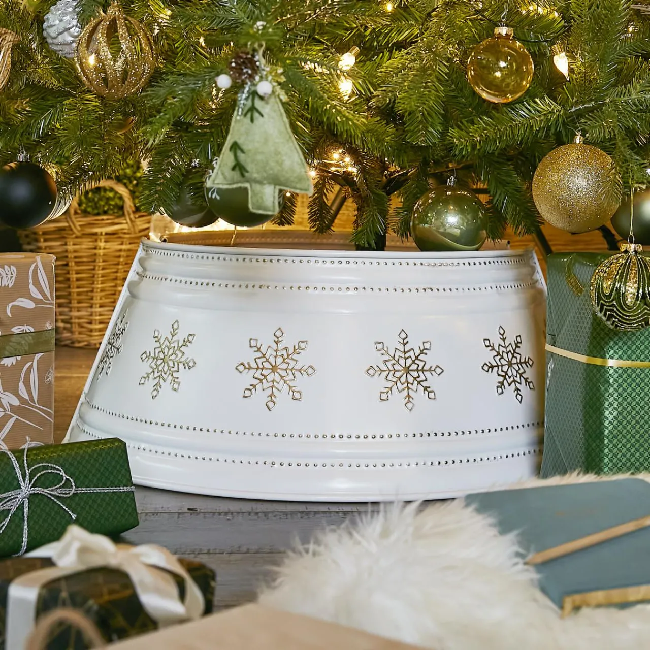 Ce cache pied est adapté pour les sapins allant jusqu’à 180 cm de hauteur maximum et possède une ouverture verticale.