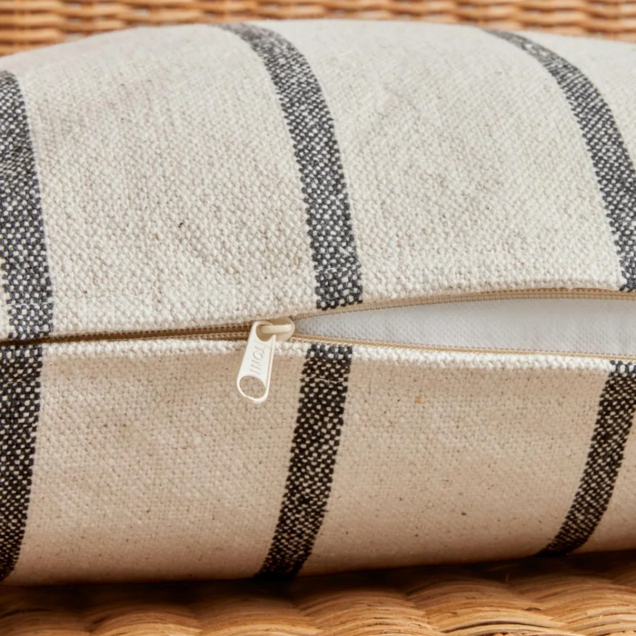 Imprimé : coussin à rayures au recto/verso.
