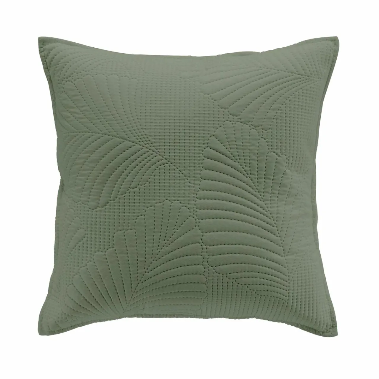 Imprimé : housse de coussin à motif végétal recto et unie au verso.