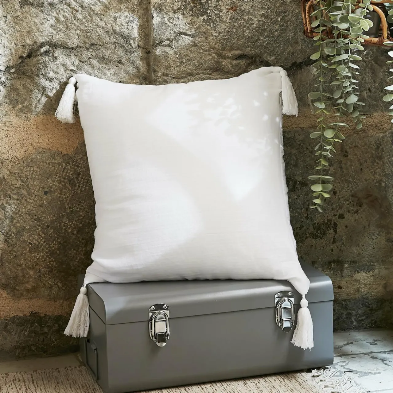 Naturellement gaufré, ce coussin en gaze de coton ne nécessite pas de repassage.