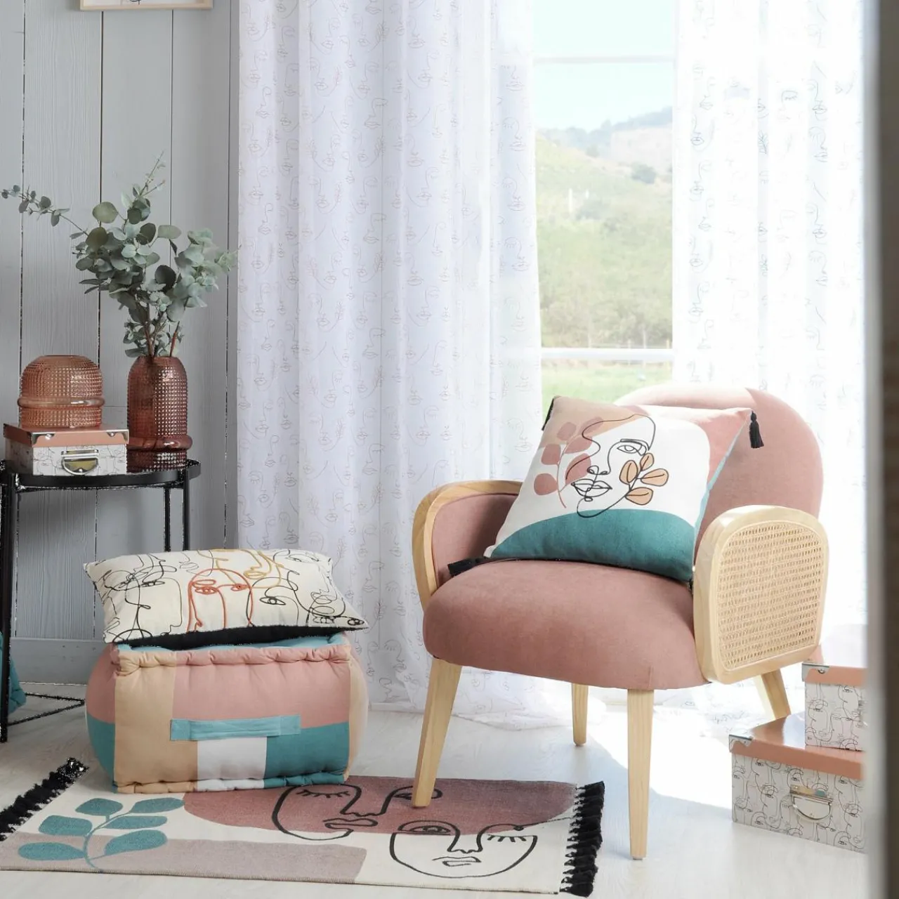Finition : déhoussable, recto à motif et verso uni.
