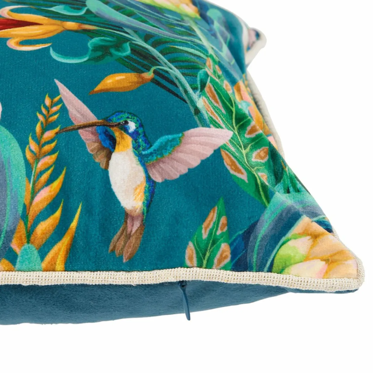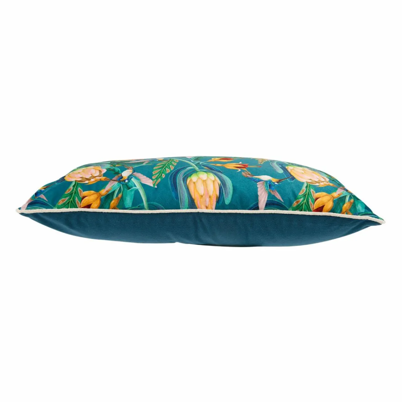 Imprimé : housse de coussin à motif exotique.
