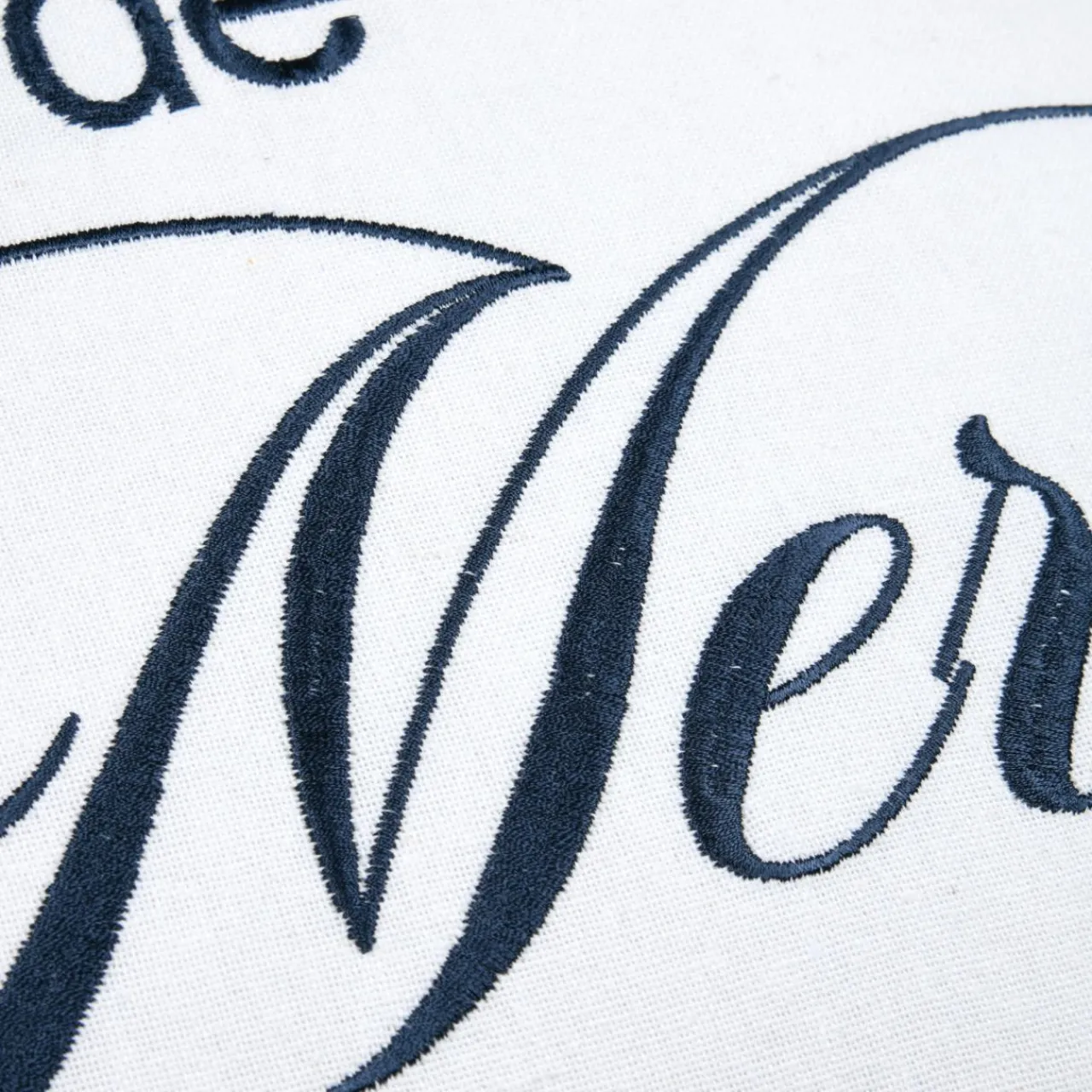 Finition : 4 œillets, 4 cordelettes, broderies, déhoussable, fermeture à glissière.