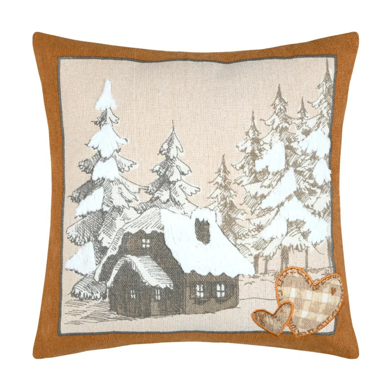 Imprimé : motif de chalet enneigé au recto et uni au verso.