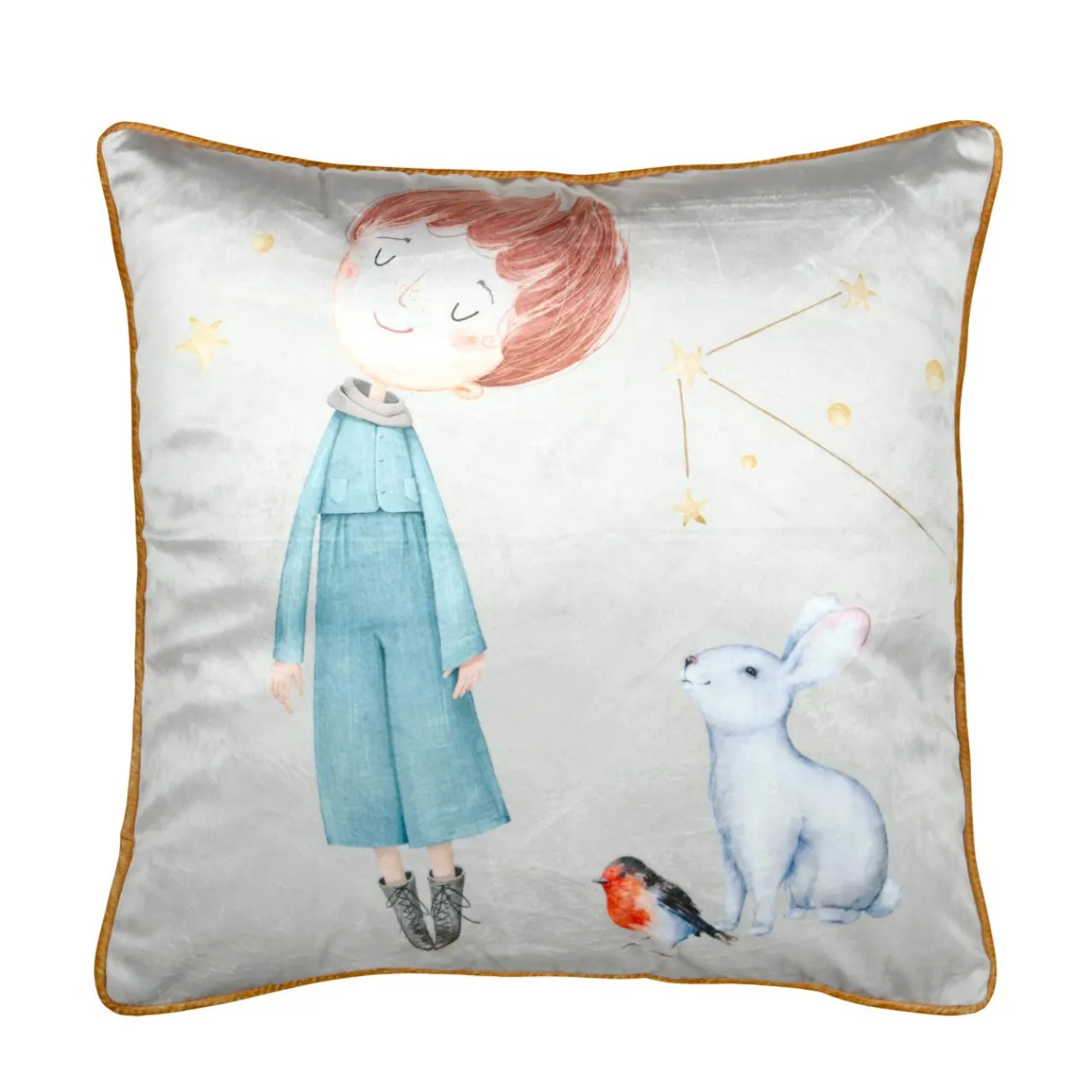 Imprimé : motif de petit garçon au recto et uni au verso.
