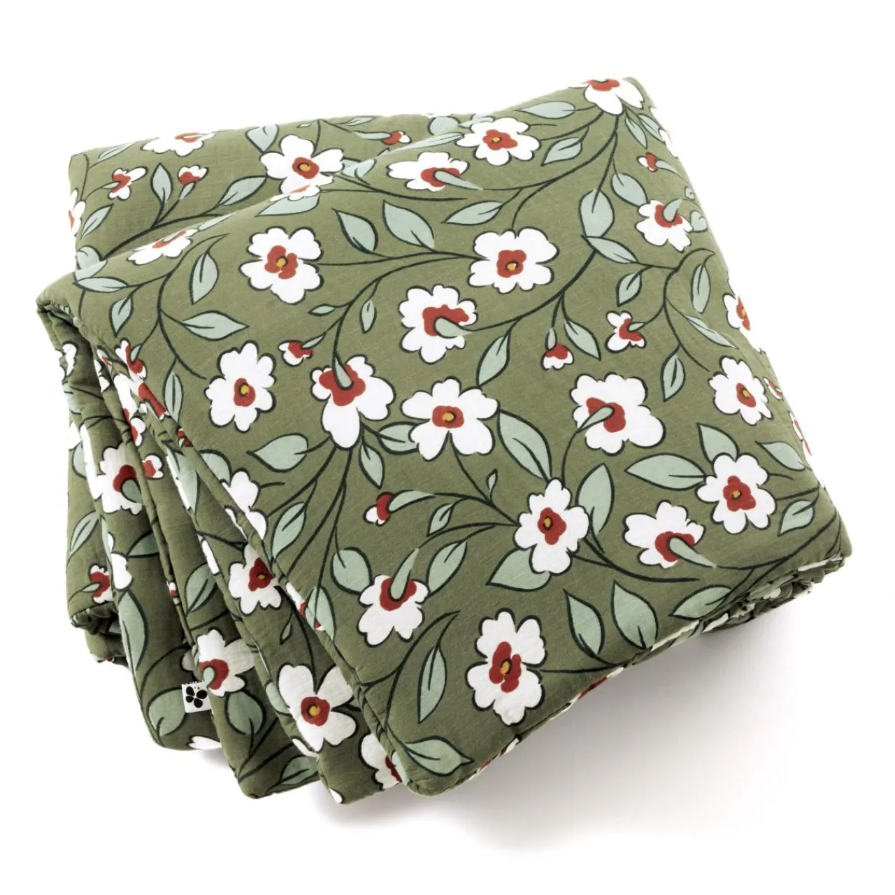 Matière : 100 % double gaze de coton (125 gr/m²), garnissage 100 % polyester (300 gr/m²).