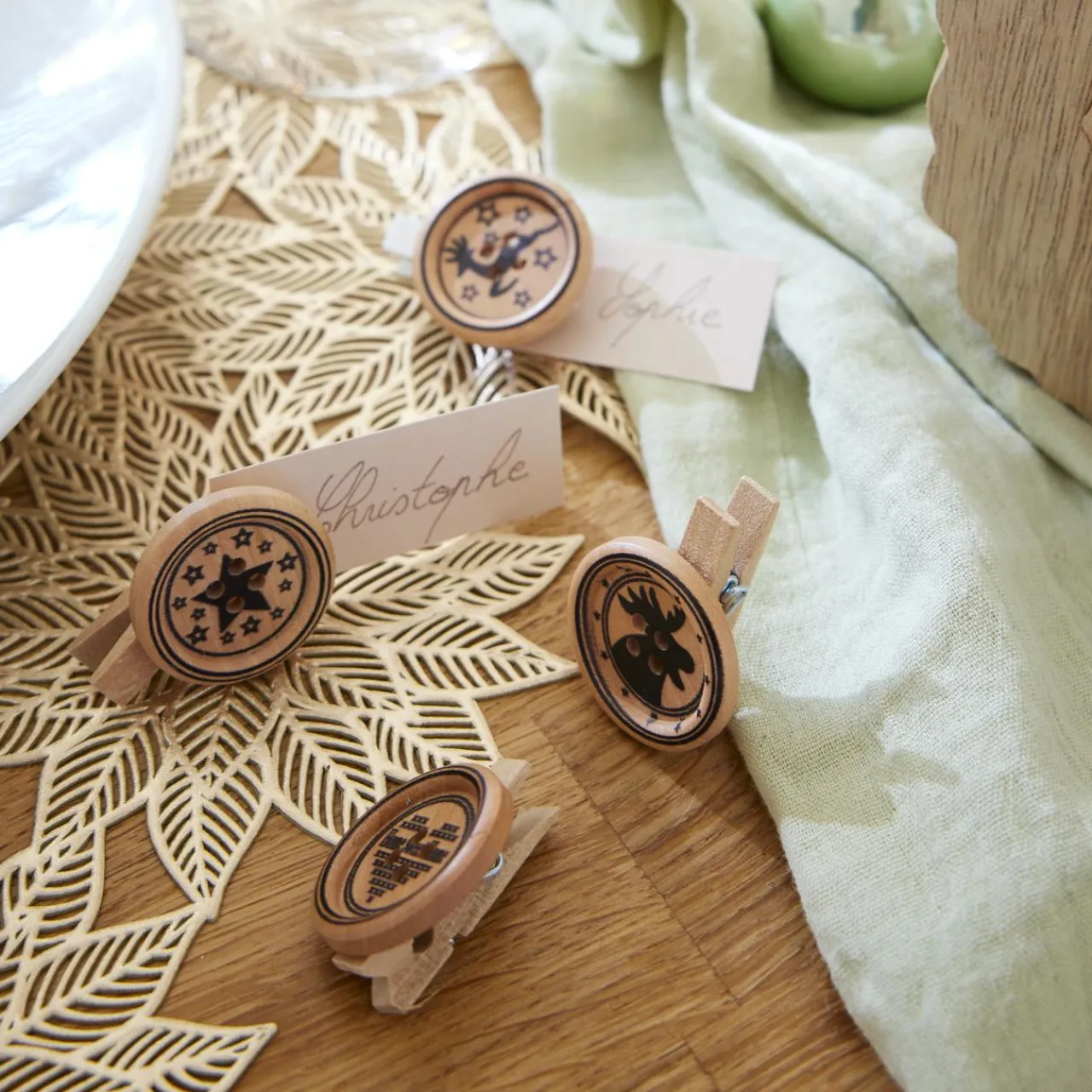 Lot de 8 pinces en bois naturel.