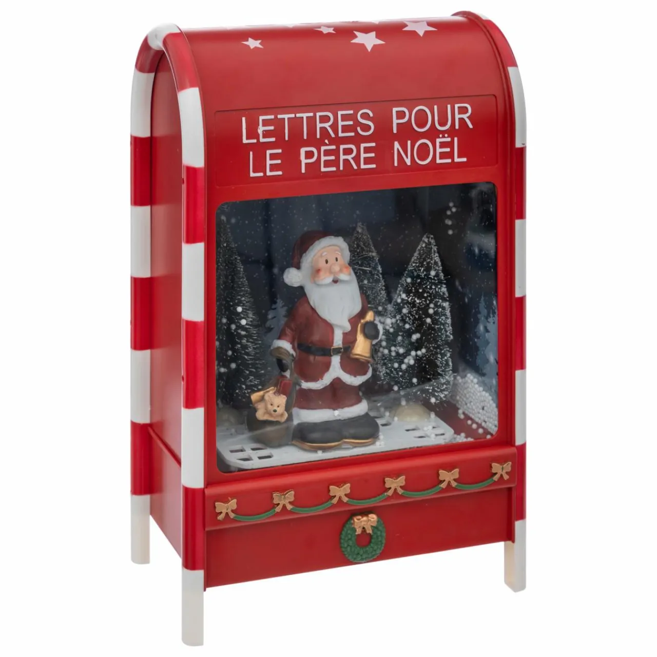 Mode fonctionnement : cette boule à neige en forme de boite aux lettres fonctionne avec des piles non fournies.