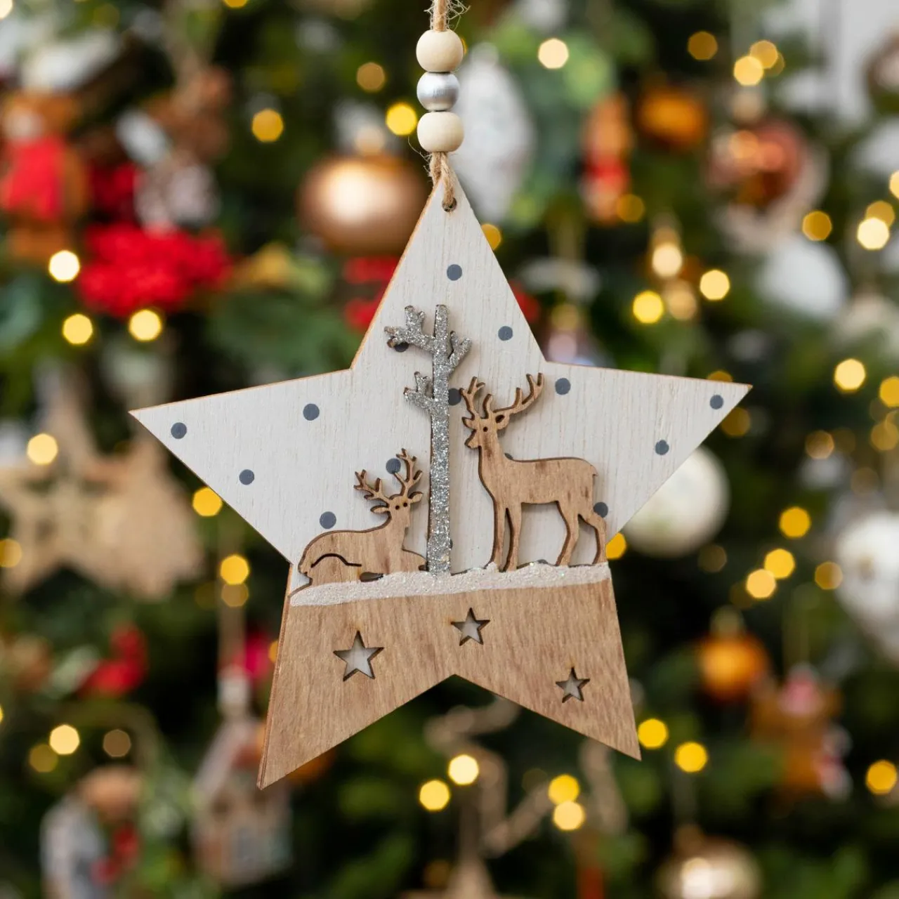 Décoration De Sapin|KAEMINGK Suspension de Noël en bois (H15 cm) Étoile fourrure Blanc