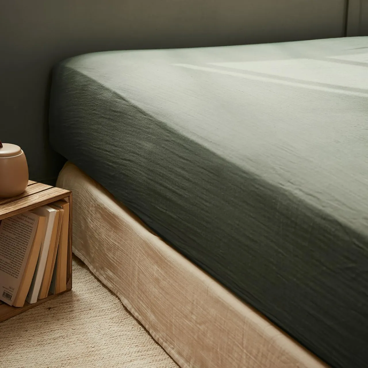 Drap Housse|EMINZA Drap housse gaze de coton (140 x 200 cm) Gaïa Vert romarin