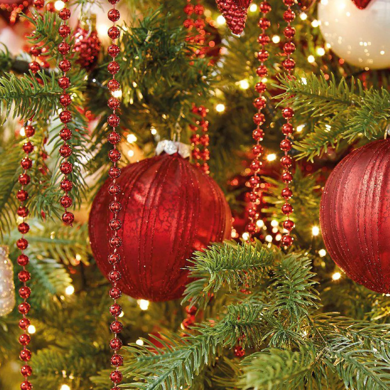 Sompteuse guirlande perle. Elle apportera du chic à votre décoration et fera scintiller votre arbre de Noël.