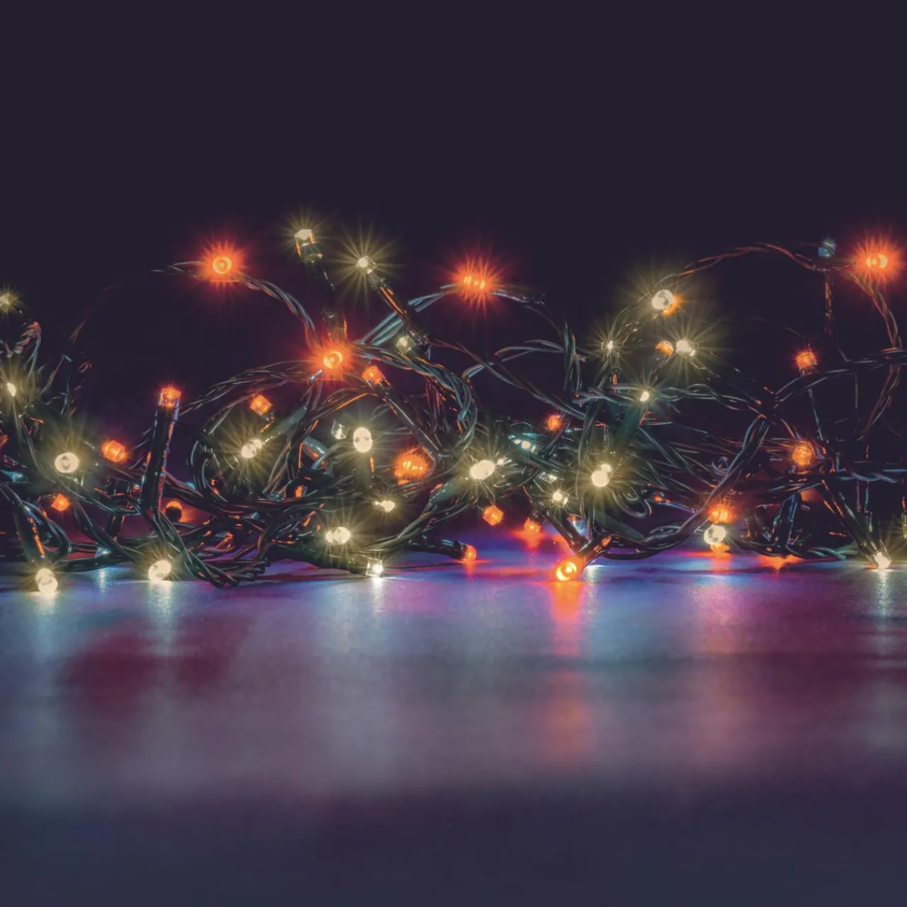 – Nombre de LED : 192. Cette guirlande est composée de 96 LED orange et 96 LED blanc chaud.