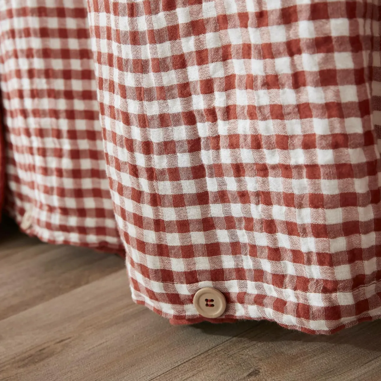 Imprimé : housse de couette à motif vichy recto et unie au verso.