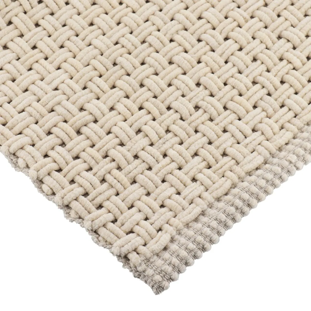 Finition : tapis de bain effet maille.