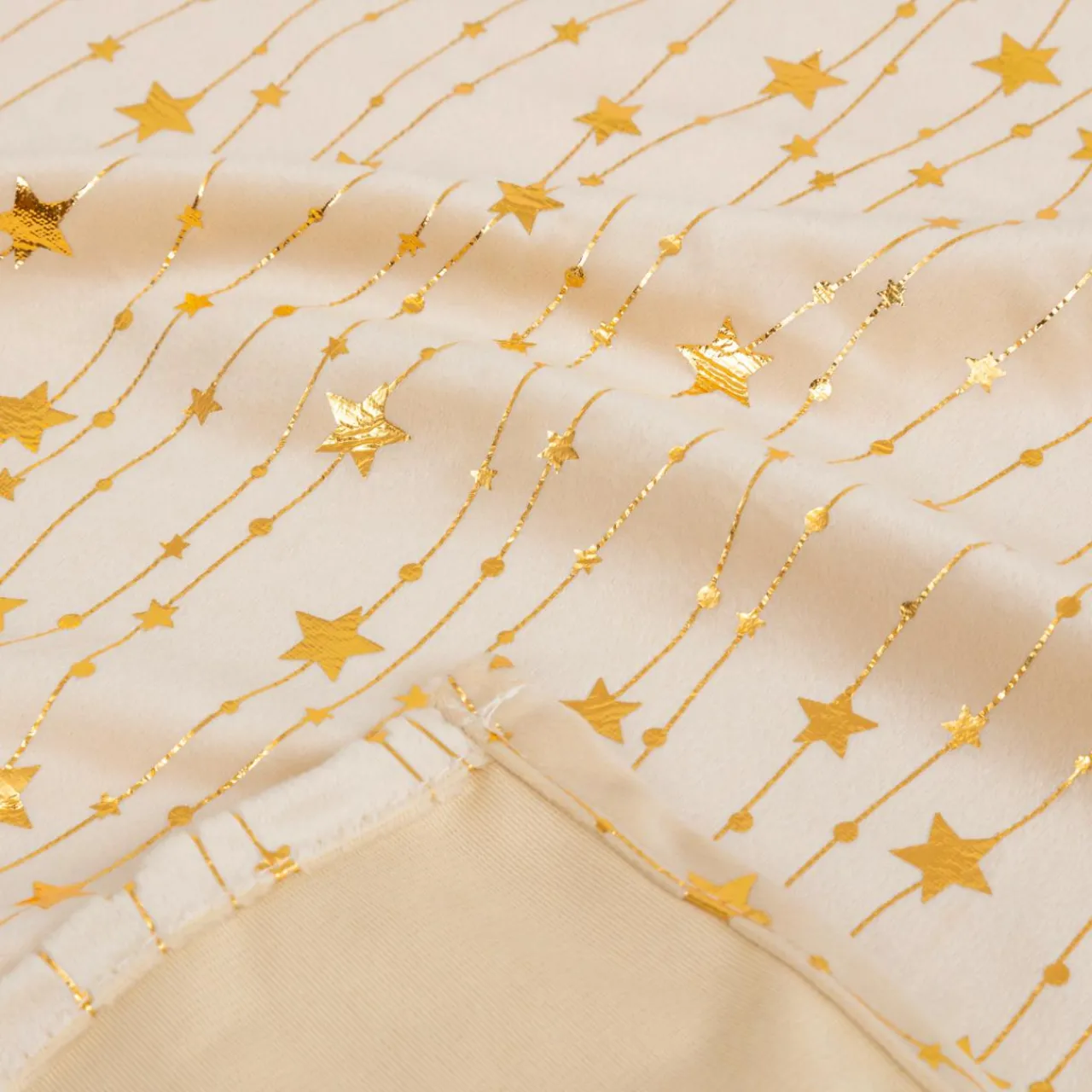 Ajoutez une touche de glamour à votre table de Noël avec notre nappe Pluie d’étoiles. Son velours ivoire orné de motifs dorés crée une ambiance festive et élégante.