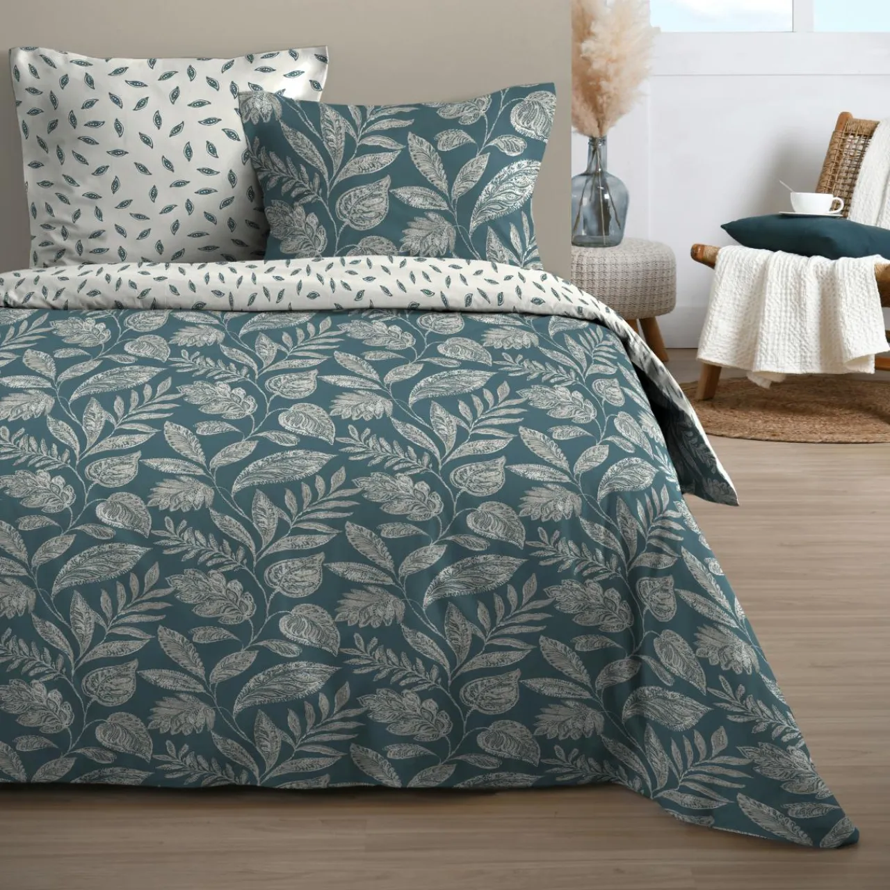 Imprimé : parure de draps à motif floral.