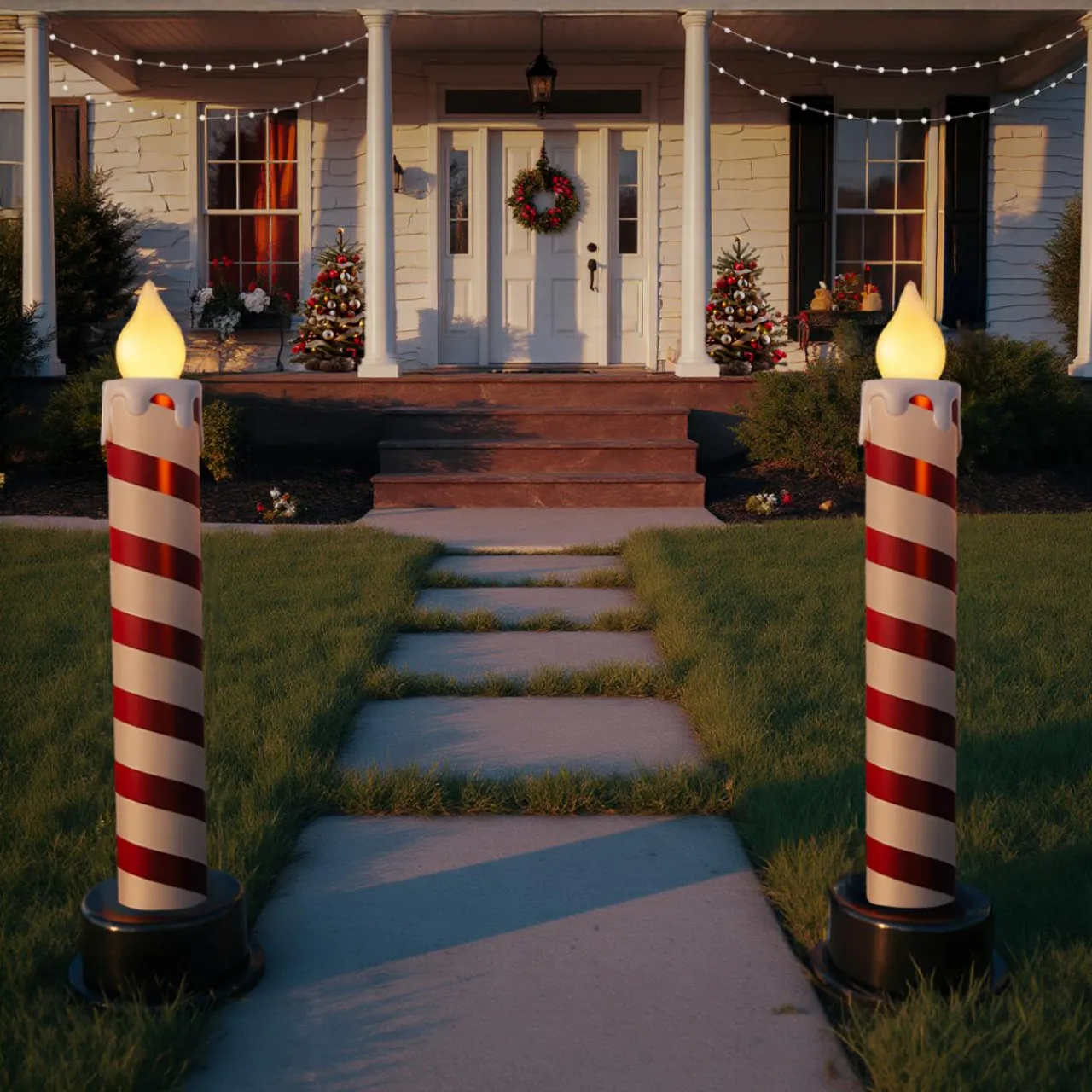 Ces deux bougies géantes lumineuses apporteront une touche festive à votre décoration. Leur couleur rouge et blanc évoque la douceur et la chaleur des fêtes de fin d’année.