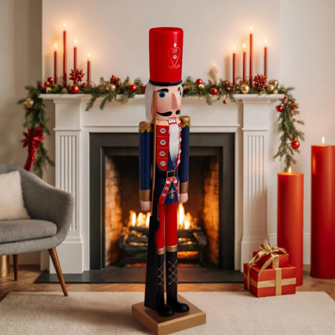 Avec son uniforme bleu roi, ce grand soldat séduira tous vos invités ! Sur une table ou sous le sapin, il renforcera votre déco classique de Noël.