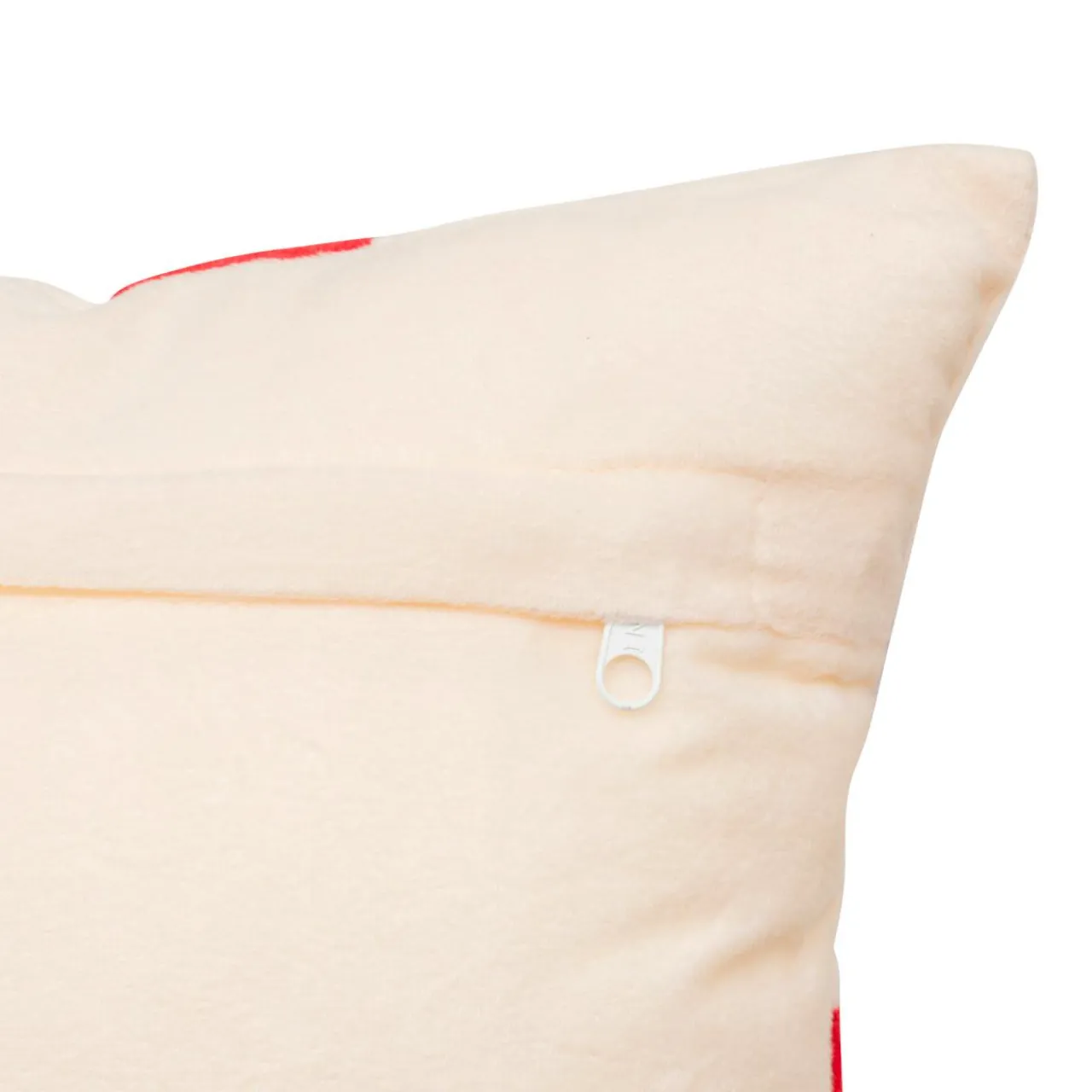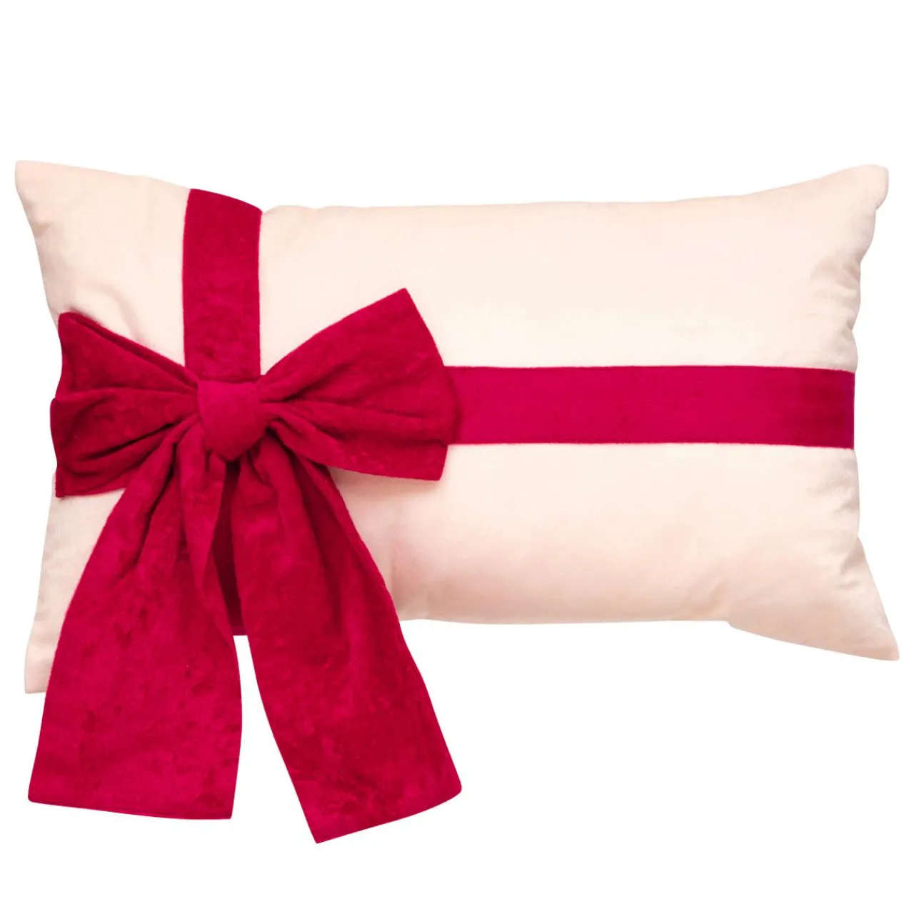 Couleur : fond écru et nœud rouge.