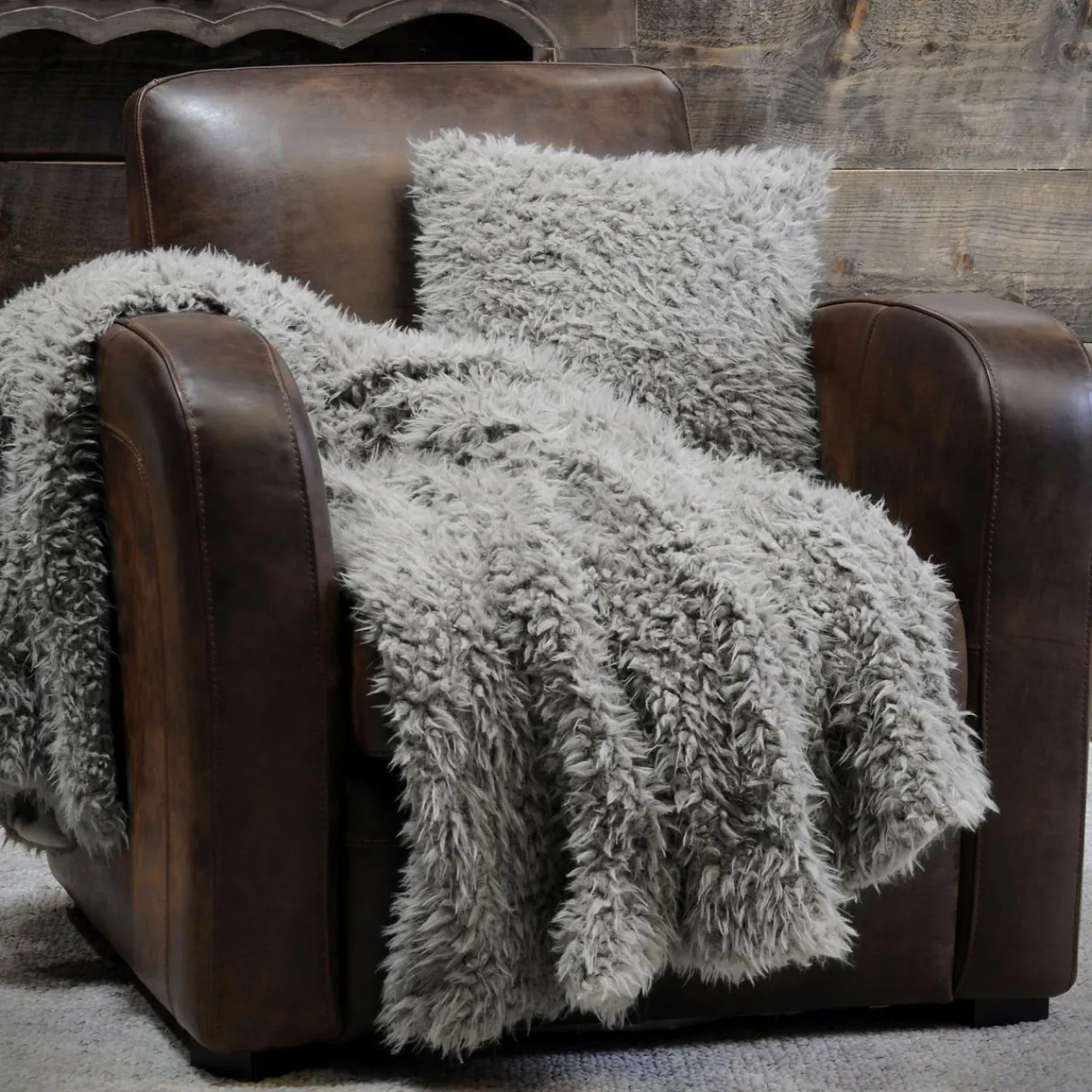 Finition : plaid recto imitation laine de mouton et verso suédine.