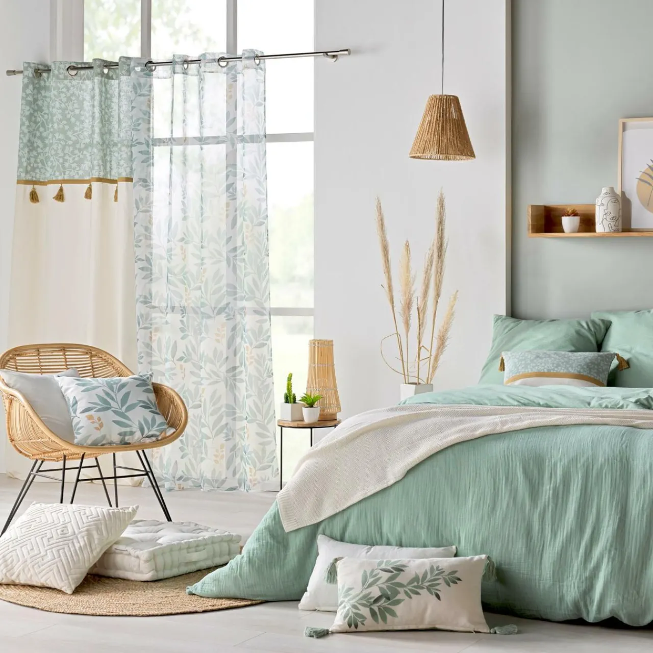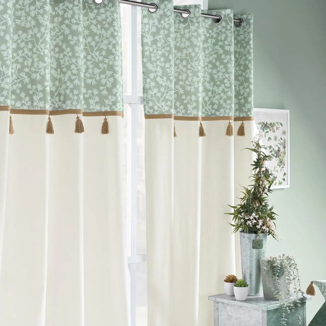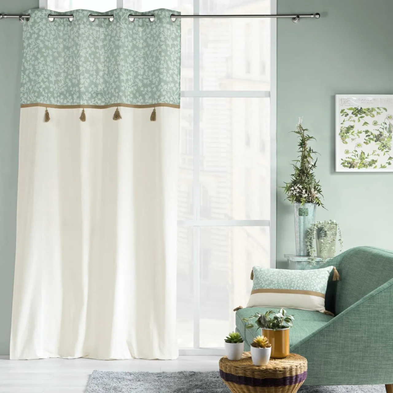 Ce rideau, à la couleur tendre et aux motifs fleuris, apportera de la fraîcheur et de la douceur dans votre intérieur.