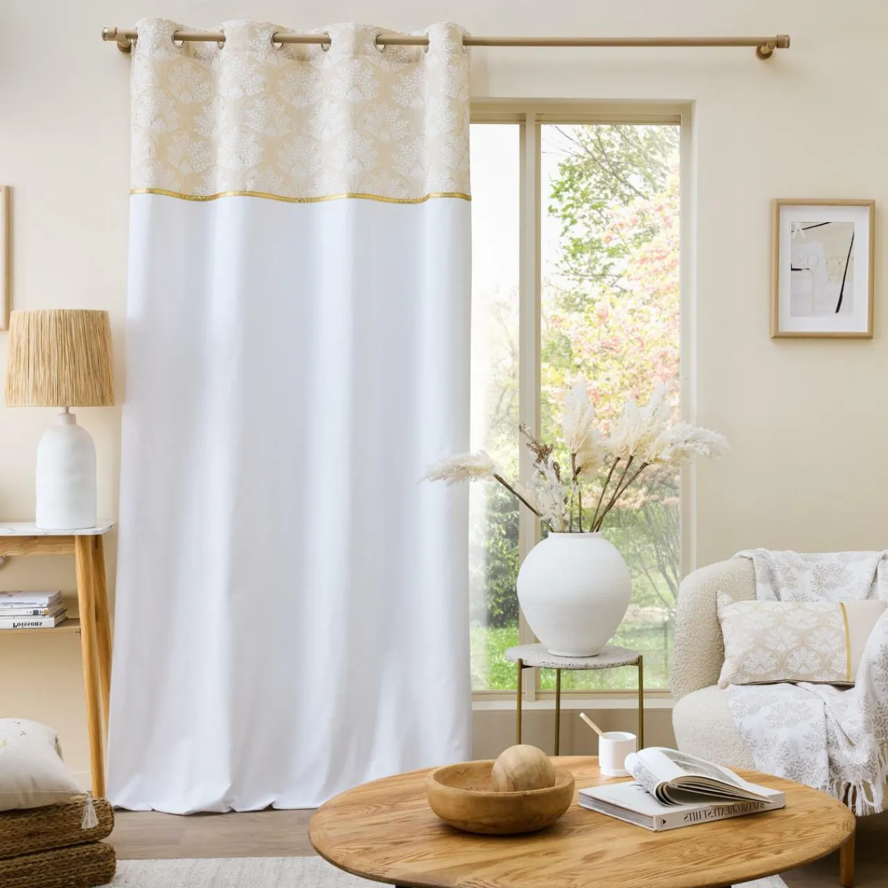 Imprimé : rideau à motif métallisé floral.