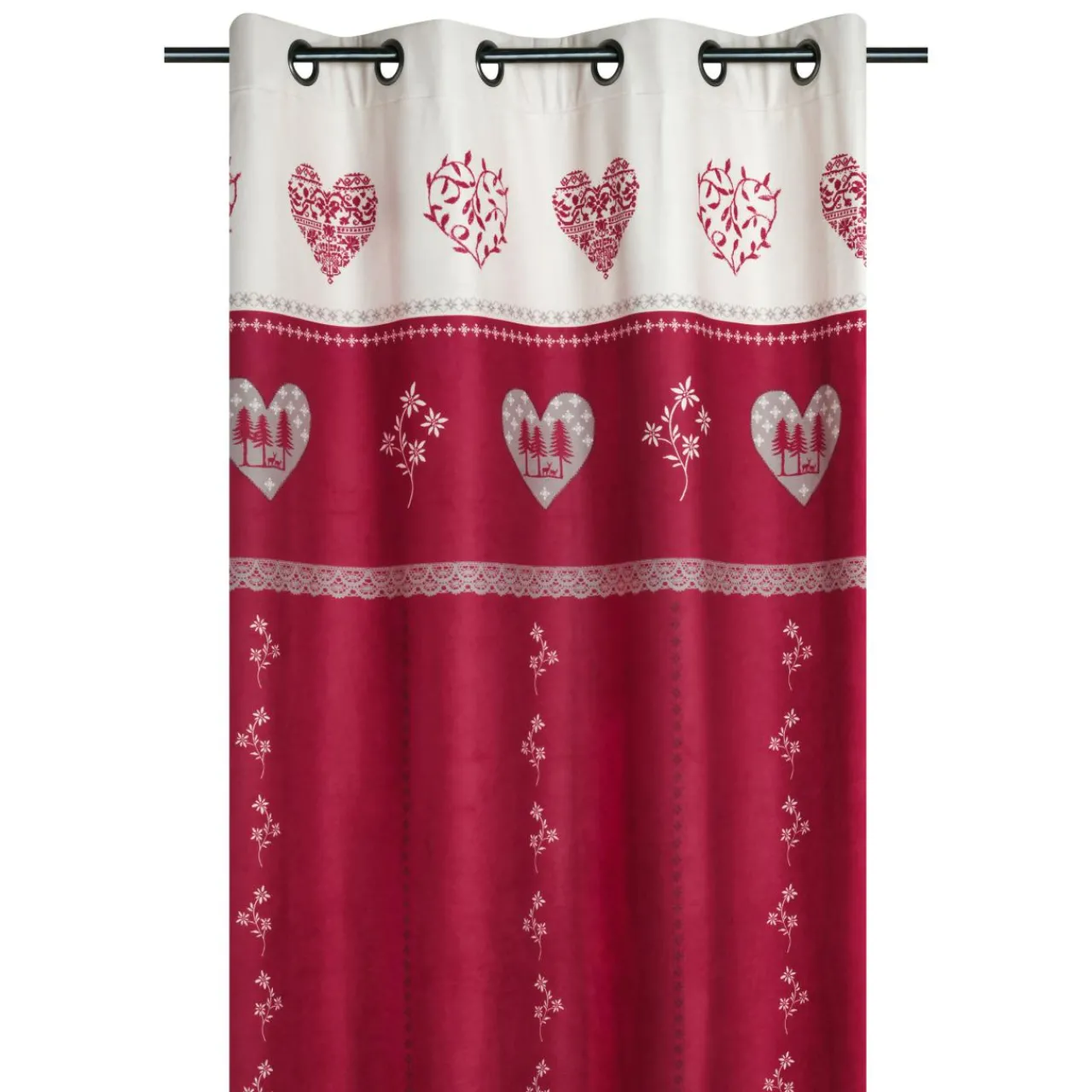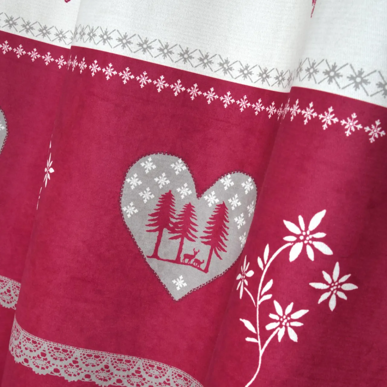 Le rideau Modane, avec son motif montagnard, apporte une touche chaleureuse de chalet à votre intérieur. Son rouge vif et ses motifs blancs créent une ambiance cosy et accueillante.