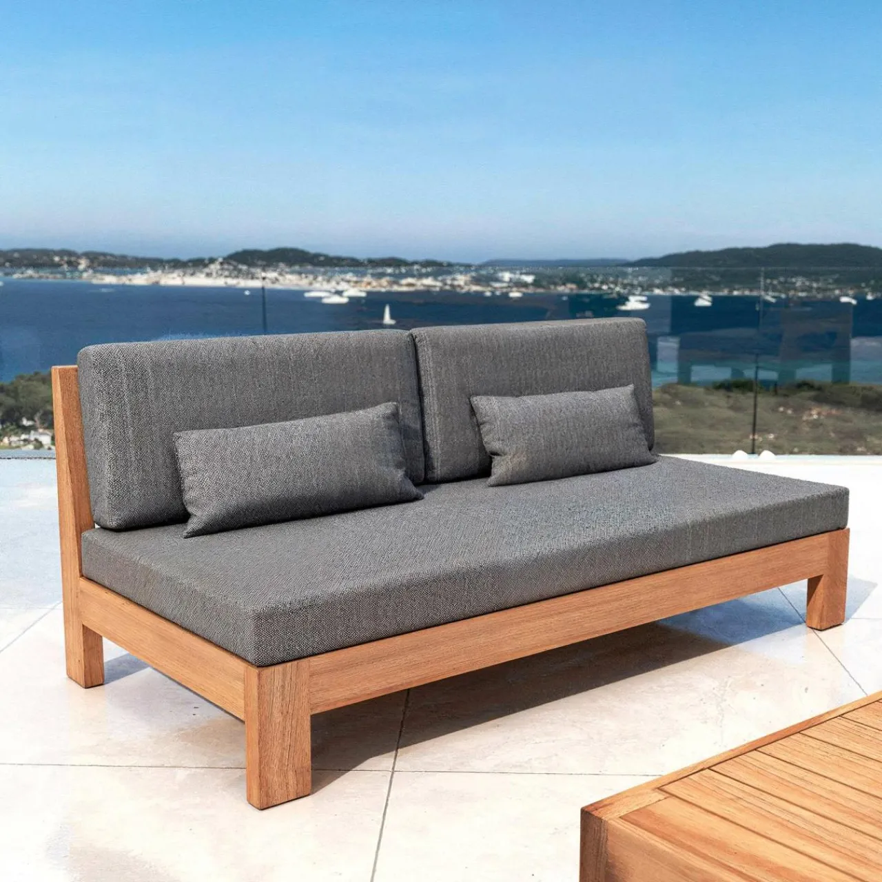 Couleur : structure bois naturel et coussins gris anthracite.