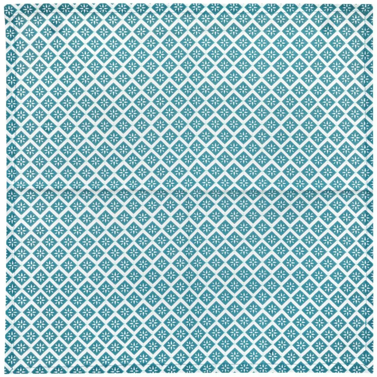 Couleur : fond blanc et motif bleu canard.
